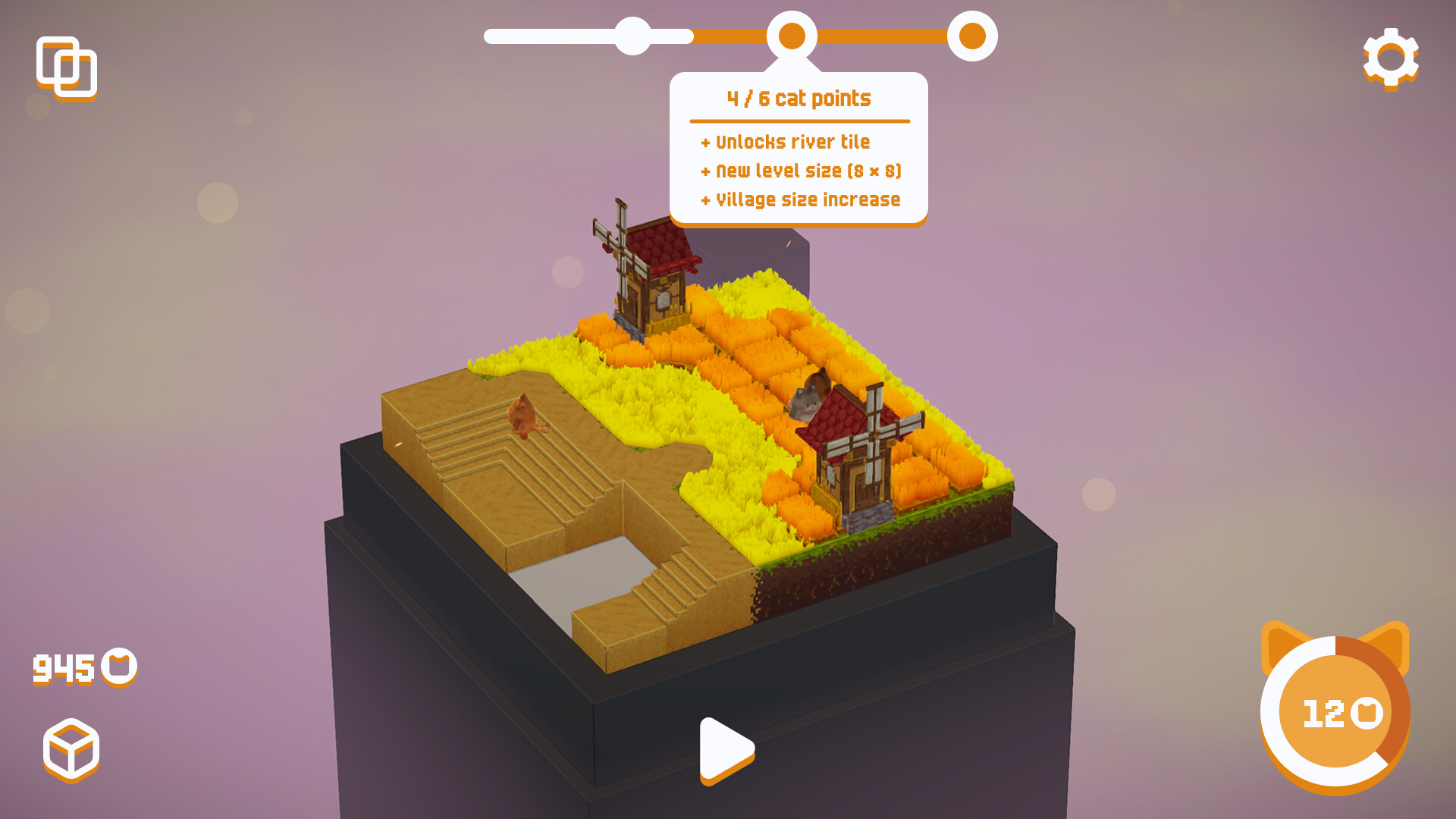 CatLands is a cozy puzzle game about matching landscape elements in a cute cat world. Repair settlements by moving blocks and build your own village to attract more fluffy residents!