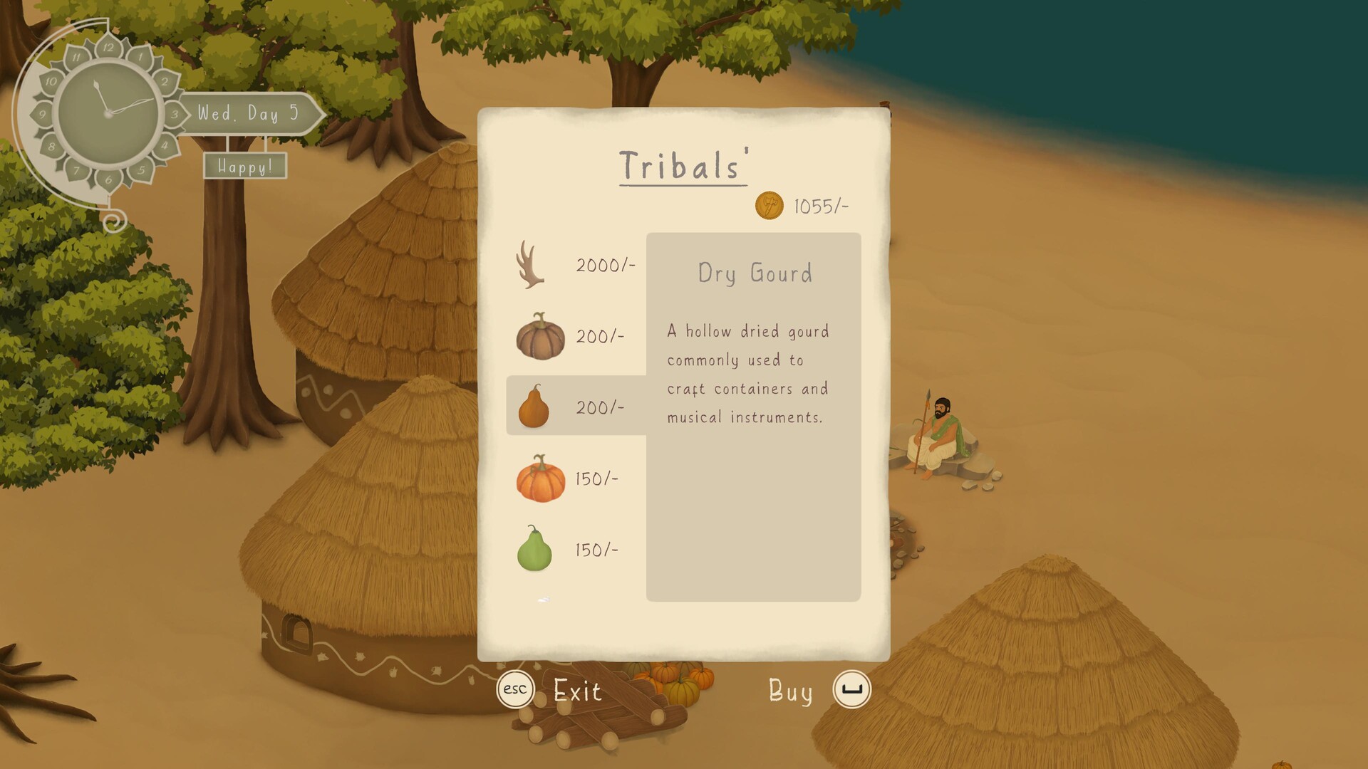 • Craft and tune musical instruments → Gather from the Woods or buy from the market, use your grandfather’s workshop to craft and tune various stringed Indian classical instruments, sell them to the local dealer or rent out your own shop at the weekly carnival.