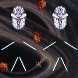 Vertical-scrolling 2D shooting game with three types of weapons