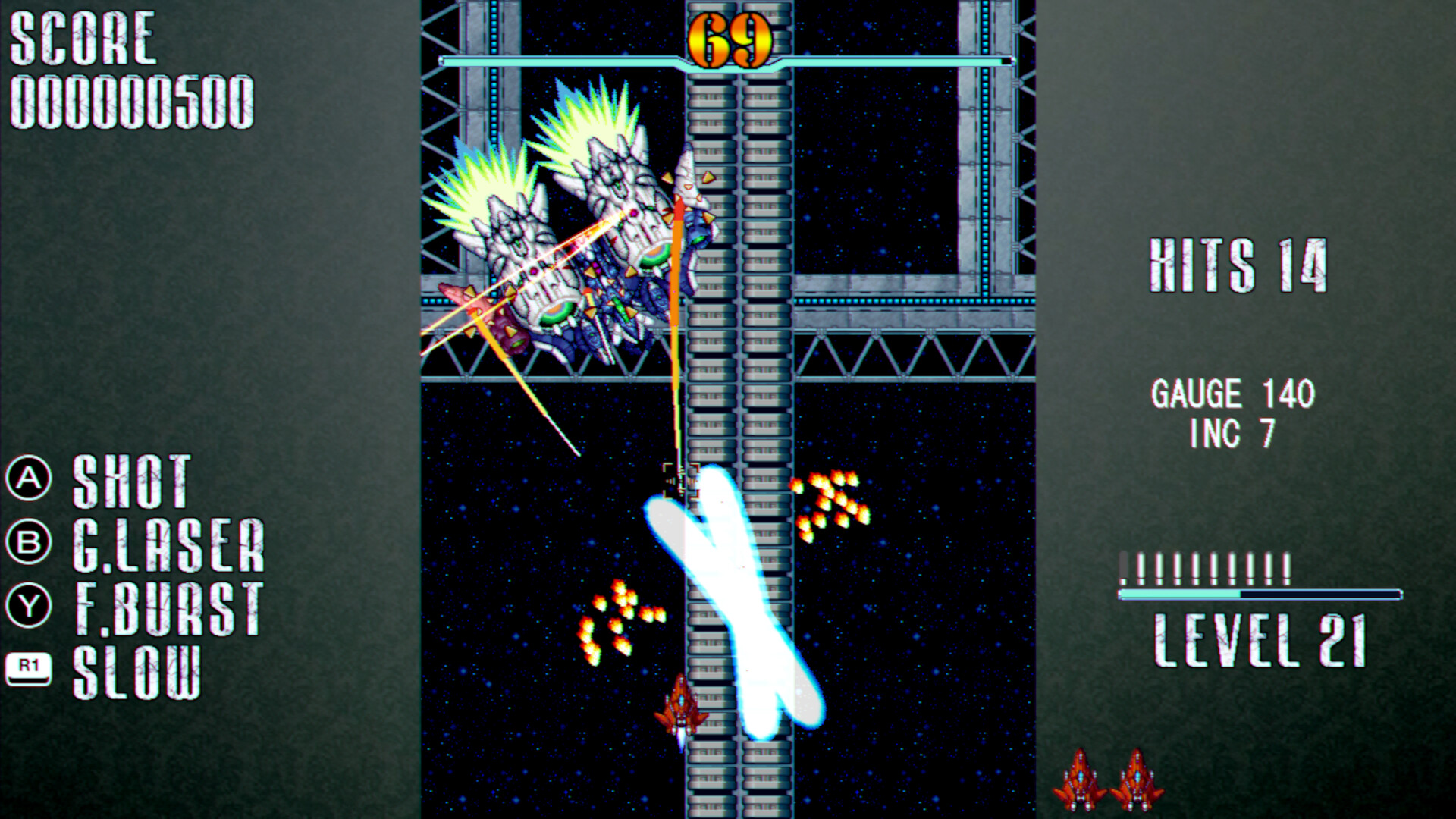 When the Gatling laser hits the target, a gauge is accumulated, and when it is accumulated to the maximum, the level is raised.