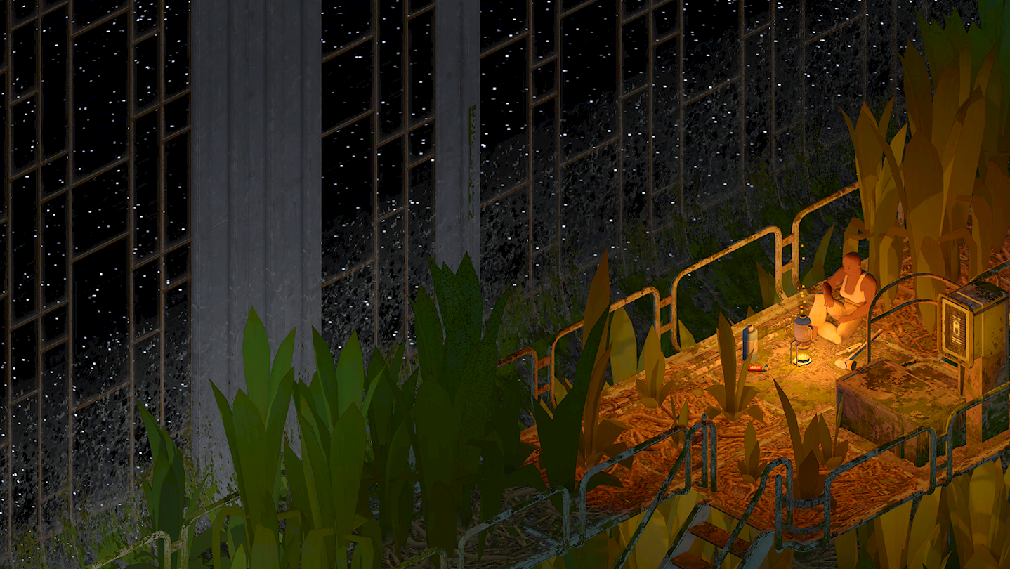 In addition to traditional hunger, thirst, and shelter needs, you must balance your character's comfort and happiness. Build a home wherever you can; an abandoned air duct, office supply closet, or a leafy hovel by a reactor cooling pool. Furnish your dwelling with cozy furniture and decorate it with strange artifacts.