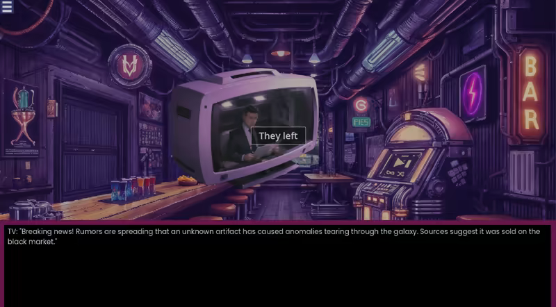Wanderers, outlaws, diplomats, rogue AIs, sorcerers, and mercenaries all come seeking something—sometimes a drink, sometimes something more. Your presence shapes their paths, whether you realize it or not.