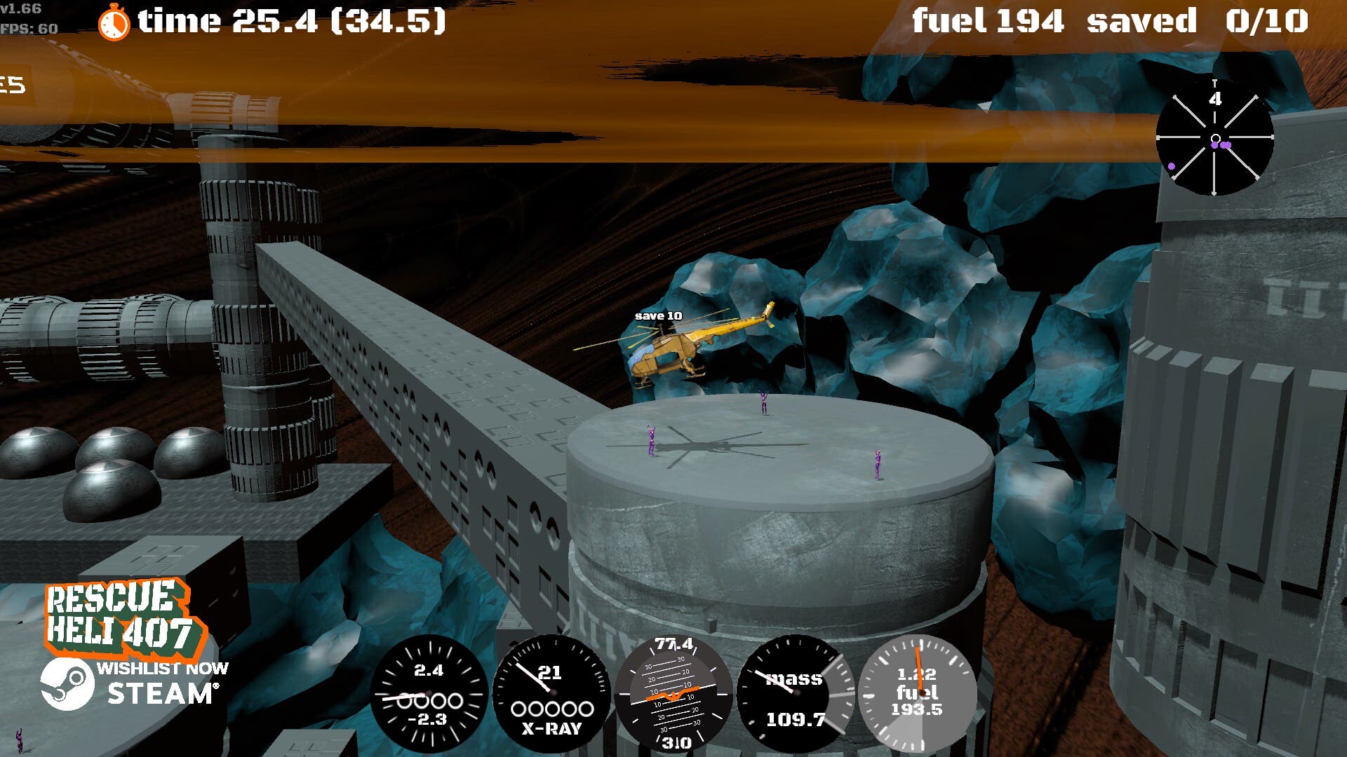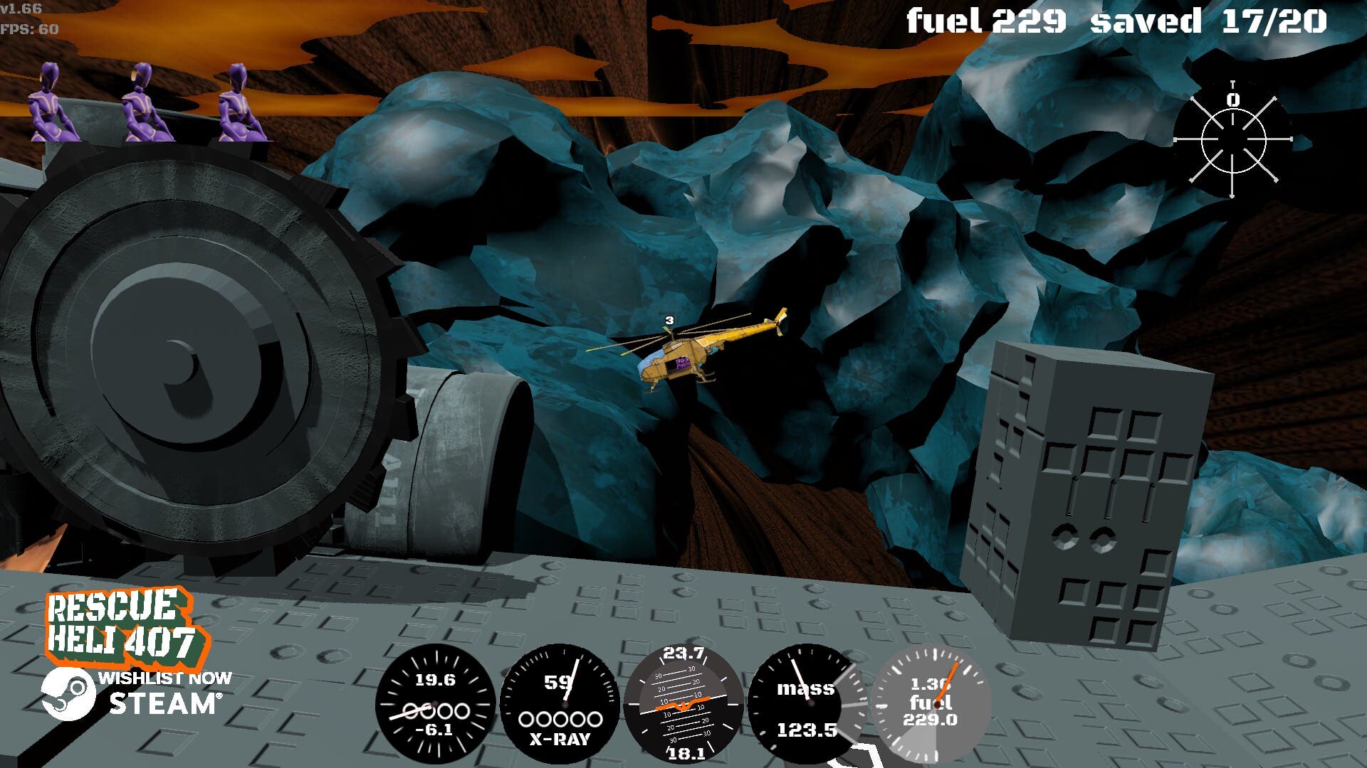 An arcade flying sim with a retro vibe. Navigate a helicopter in 2.5D and rescue people waiting for transport. Don't overdo the aerial acrobatics-passengers might fall out! Also, land softly! And be quick-you're running out of fuel. Progress and upgrade the heli.