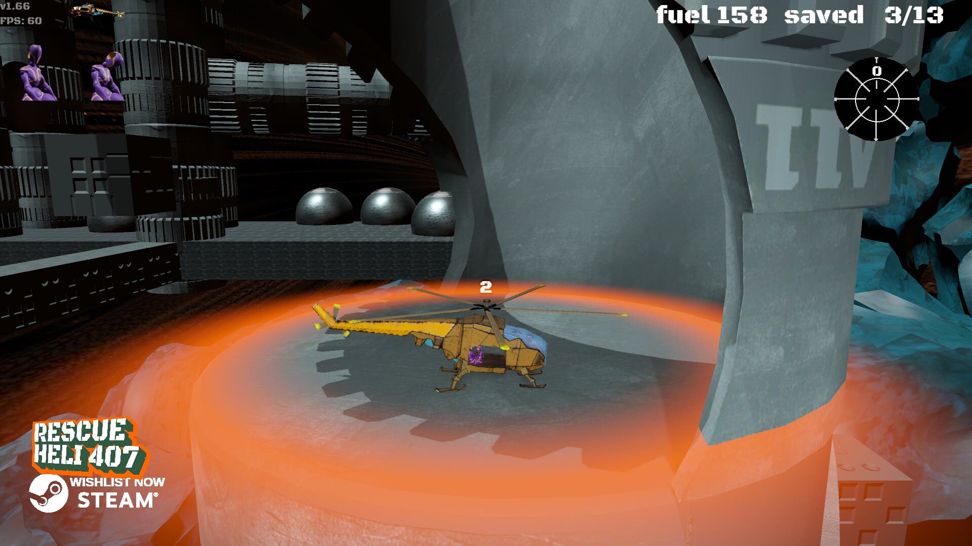Your remaining fuel is displayed on-screen, and the helicopter itself turns red when fuel is low—along with the corresponding HUD label. For nerds only: