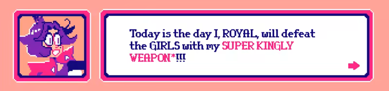 • Hover over pink words to learn more about ROYAL! What's his SUPER KINGLY WEAPON? How many PARTIES has he been to? How many games has he starred in?!?