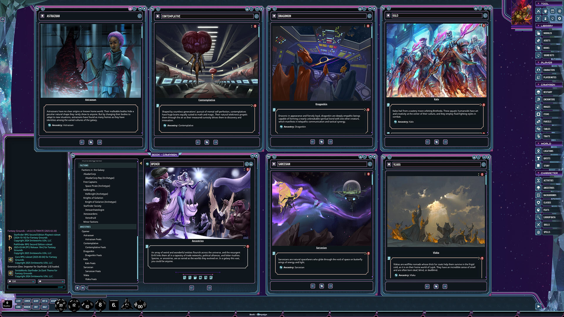Requires: The free Fantasy Grounds virtual tabletop (VTT) software and a one time purchase of the Starfinder 2.0 ruleset.
