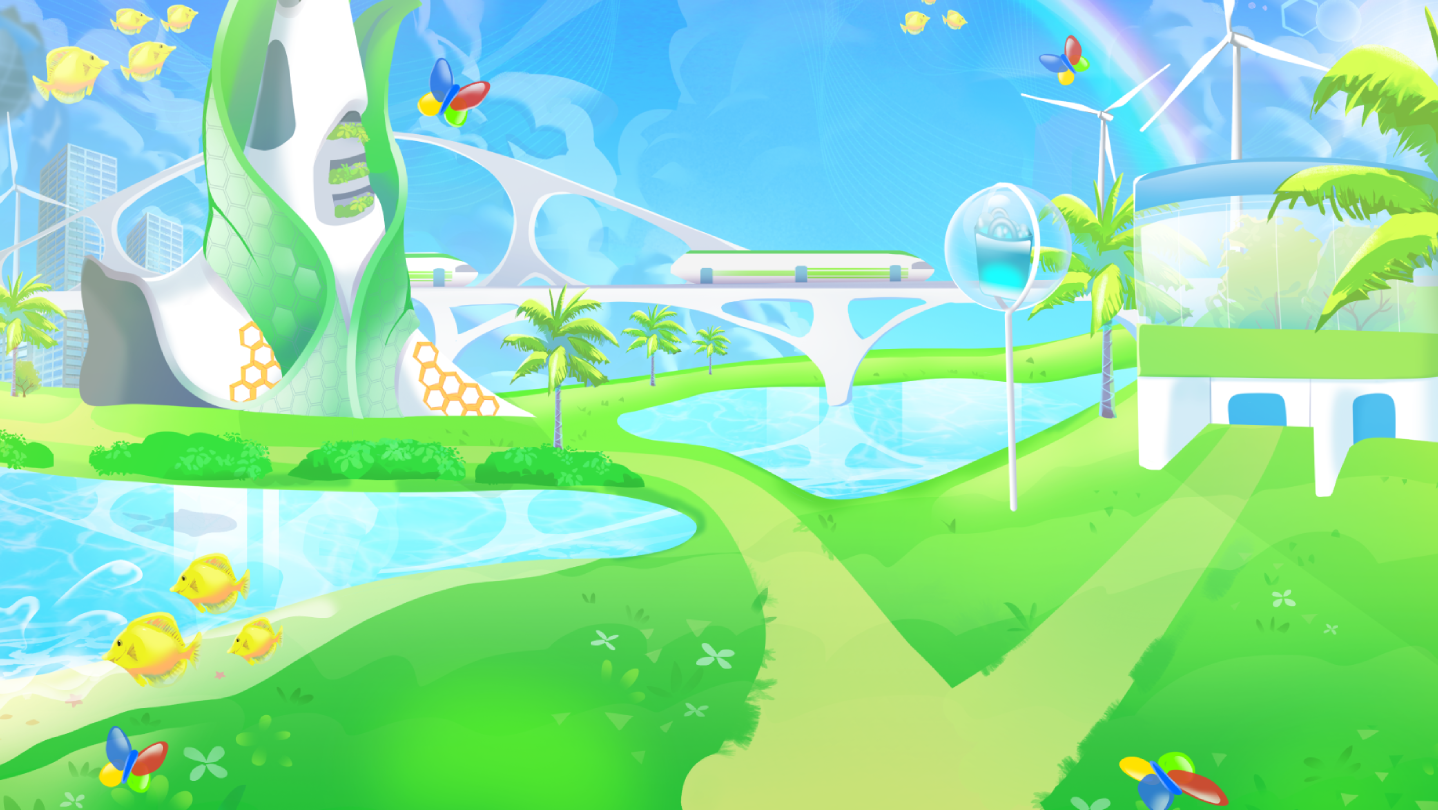 Grab your building tools and design your very own "Frutiger Space"! Decorate your home, invite your friends over to hang out, or travel to other players' houses to get inspired by their creativity!