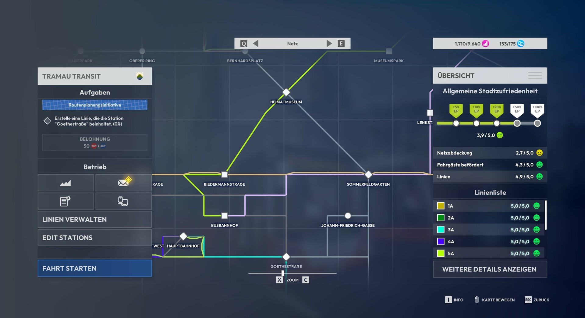 Choose from up to 15 pre-made tram and bus lines or build your own.