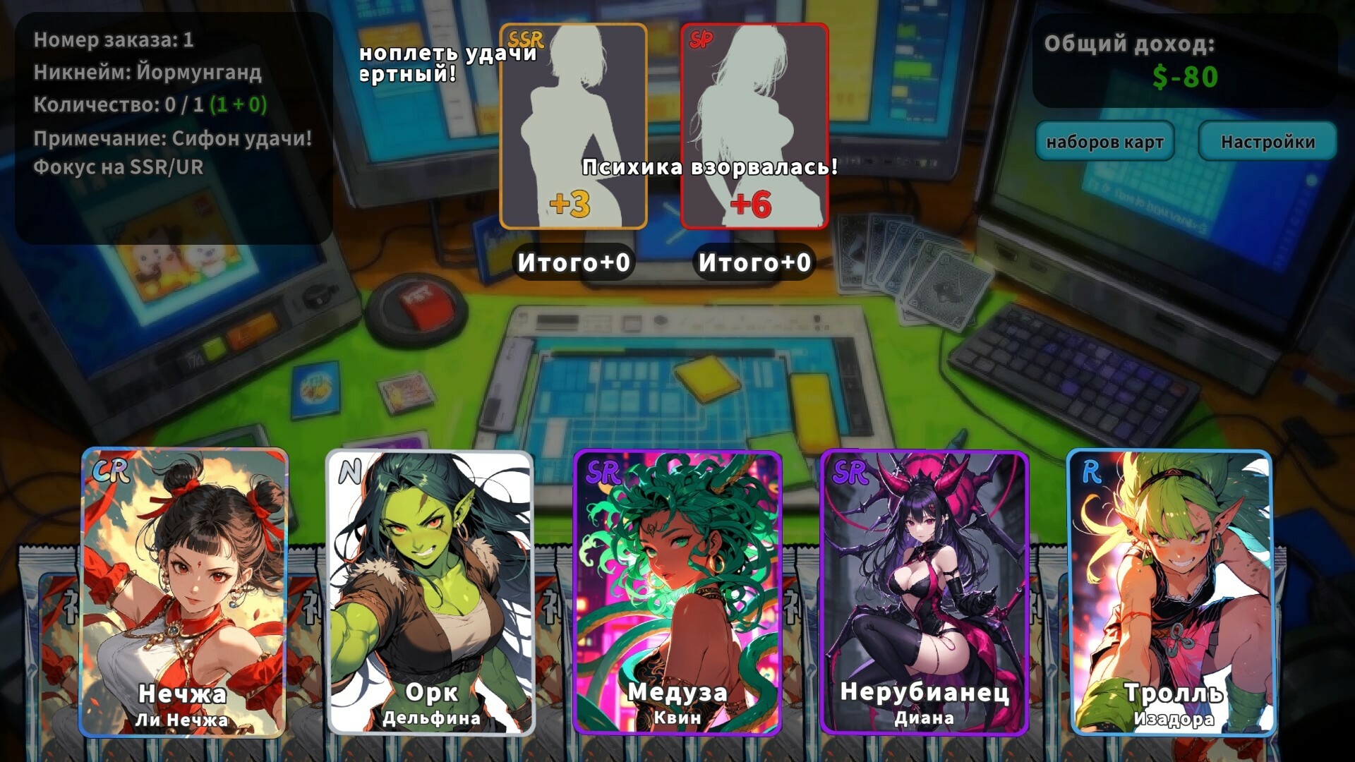 игре вы можете зарабатывать деньги, разделяя пачки карт по заказам клиентов, или тратить свои собственные деньги, чтобы испытать удовольствие от разделения карт.