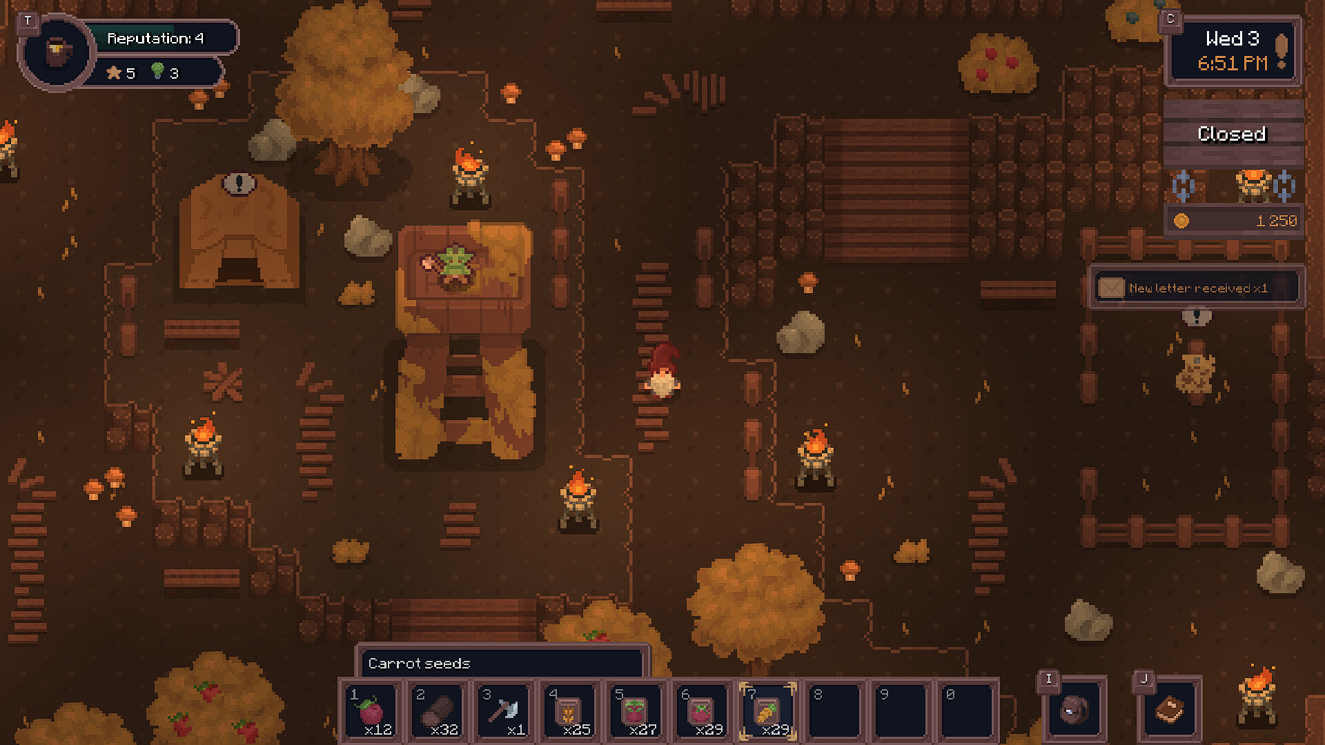 Cela fait longtemps que le dernier client a quitté la taverne. Elle est tombée en ruine depuis. Fabriquez des meubles et décorations pour la transformer selon vos envies ! Les objets décoratifs influencent positivement les clients – peut-être admireront-ils cette magnifique statue et laisseront un bon avis.