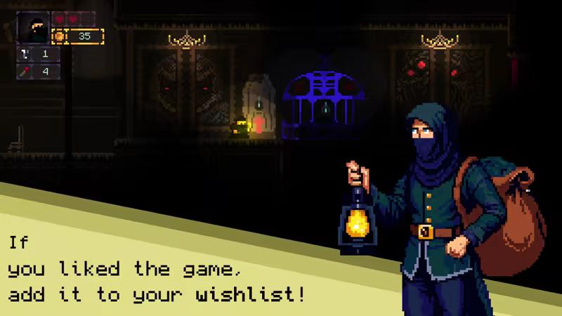 Platformer with elements of metroidvania. Begin your adventure as a thief who is immersed in darkness. Use your lantern to explore eerie locations, search for clues, and interact with surrounding objects to uncover secrets and achieve your goals.
