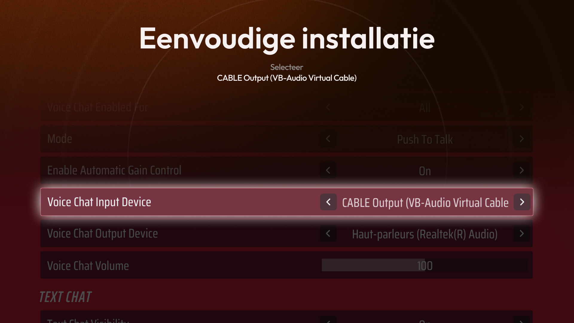 2e optie: Volg de gids die we op Steam (Community hub / Guides) hebben gemaakt. Het nadeel: u kunt uw microfoon niet dempen met Blastr (als u het dempen in Blastr opheft, hoort u uzelf twee keer).