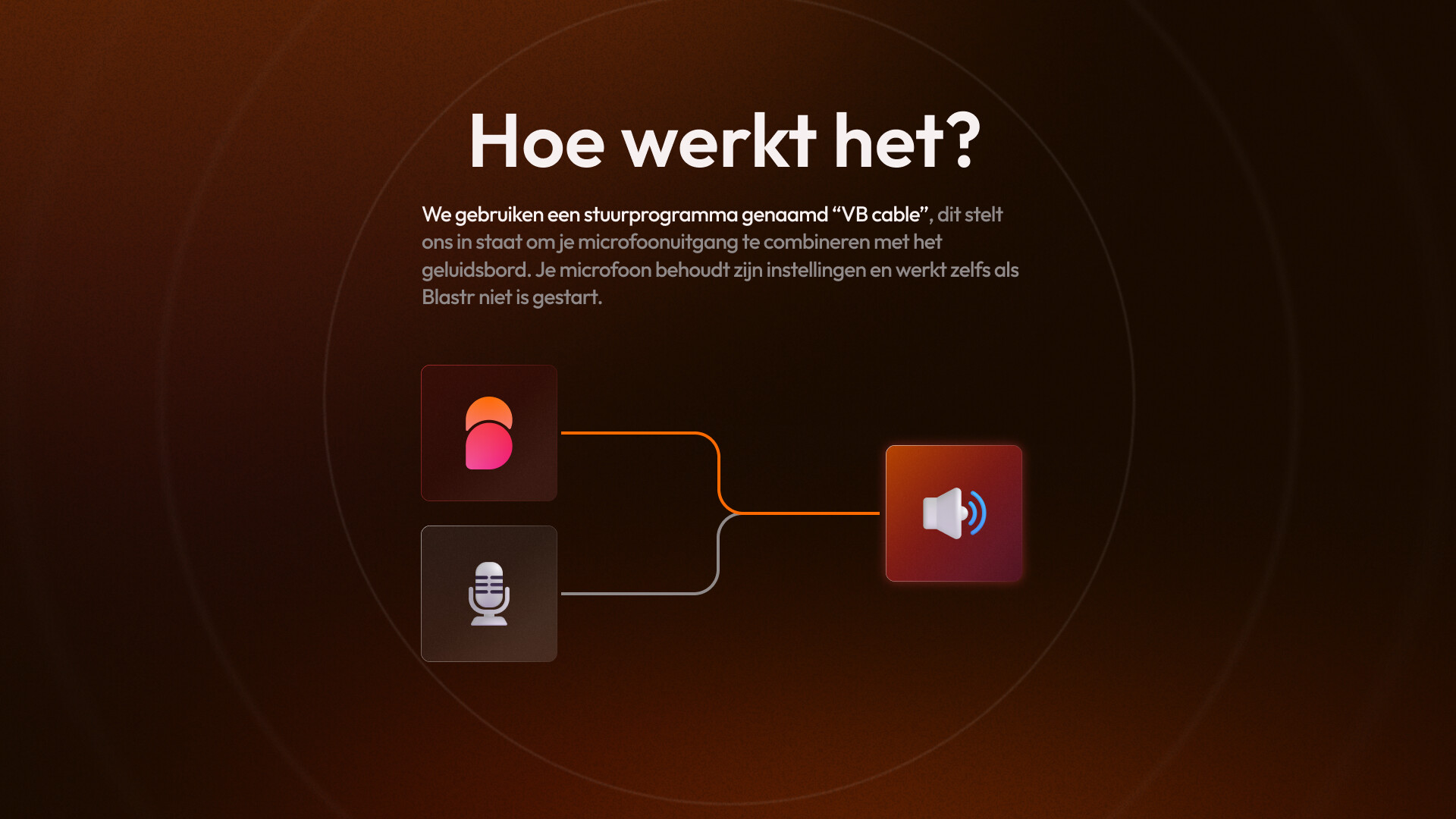 U kunt ervoor kiezen om Blastr in uw audio-opnamen op te nemen of niet, afhankelijk van de optie die u in input selecteert. Ja - Blastr (VB kabeluitgang) Nee - Uw microfoon