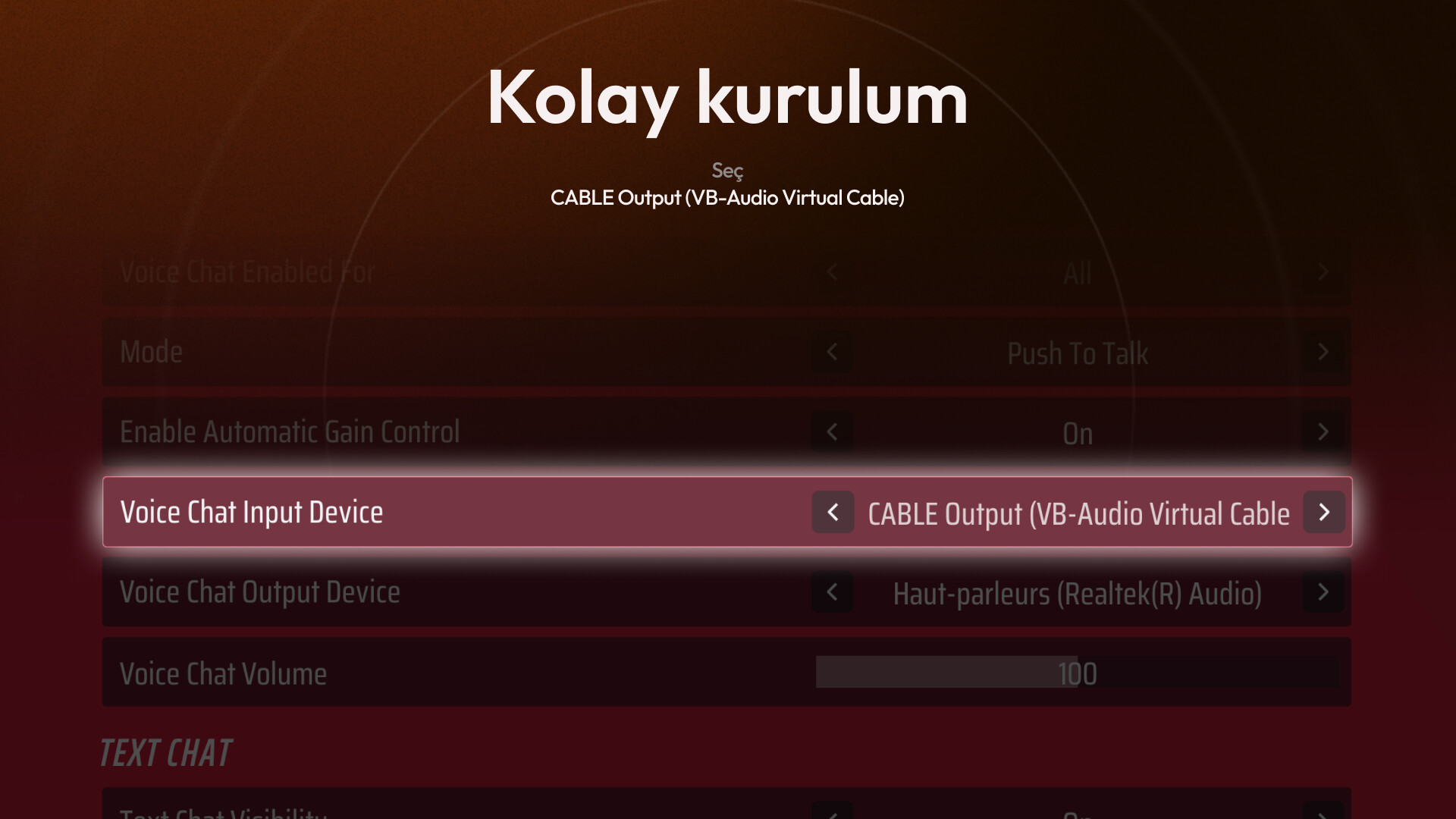 Mikrofon/giriş seçicisinden sadece VB-Cable Output’u seçin, işte bu kadar!