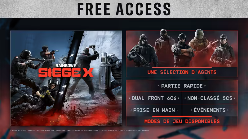 - L'accès aux modes Partie rapide, Non-classé et Dual Front ainsi qu'à une sélection d'agents