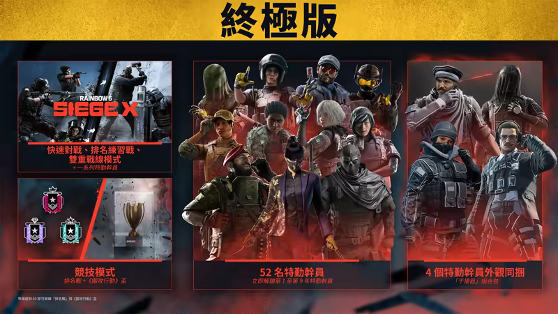 《虹彩六號:圍攻行動 X》是戰術團隊射擊遊戲中無庸置疑的典範,唯有透過絕妙的戰略和執行力才能在遊戲中獲勝。