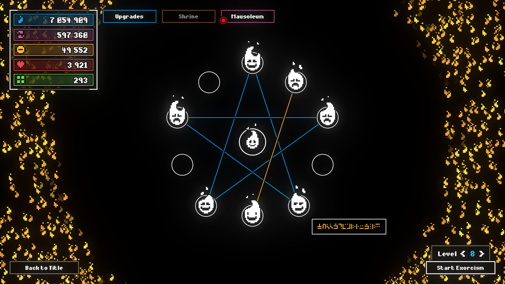 A whispering flame craves souls. With each offering, your resolve strengthens. Fight spirits, collect their essences, and feed a hunger that may never subside in this short eerie incremental game.