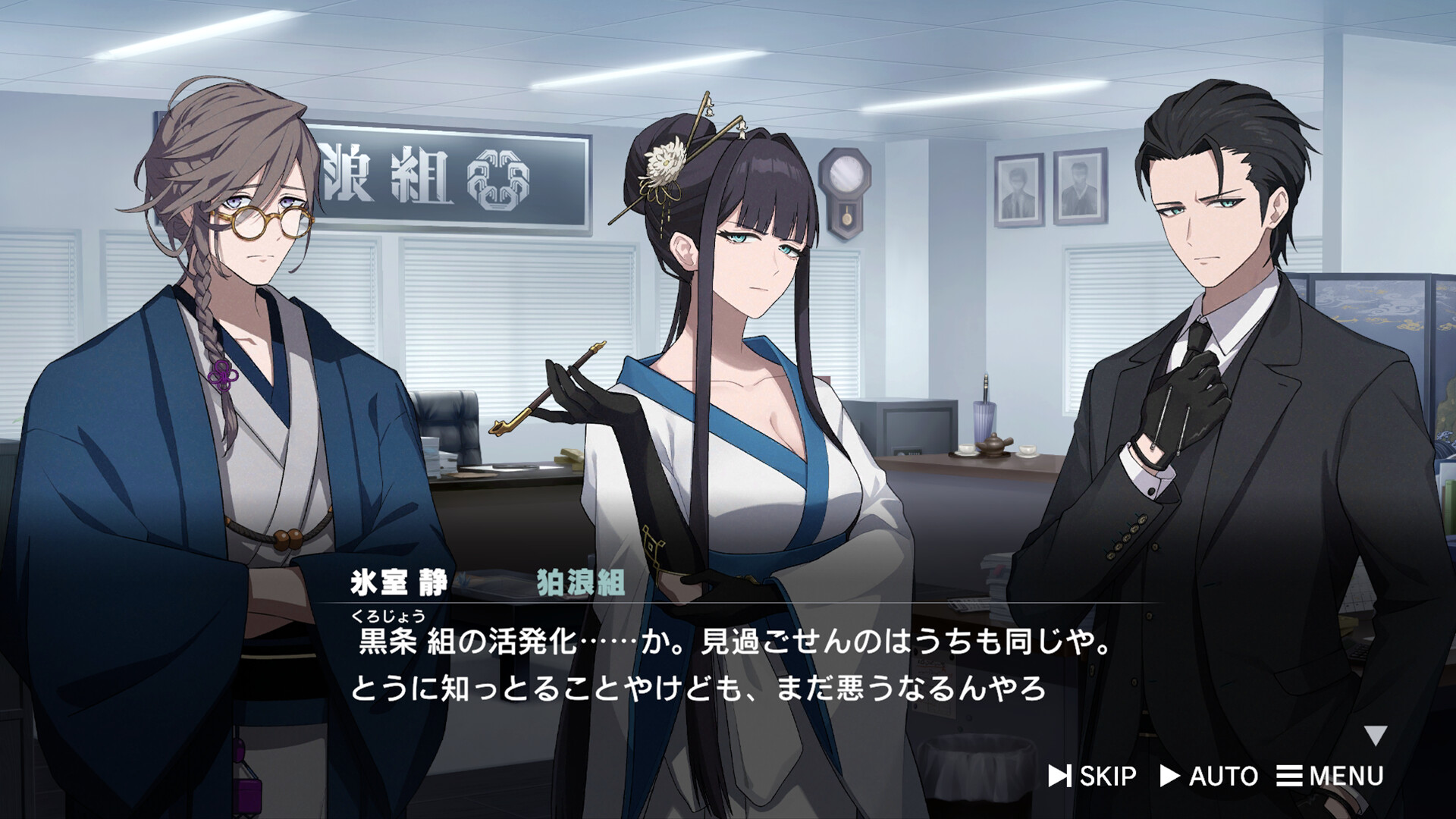 普段は物腰柔らかい雰囲気をまとっているが、狛浪組への想いは人一倍強く、組を悪く言う者には容赦しない。