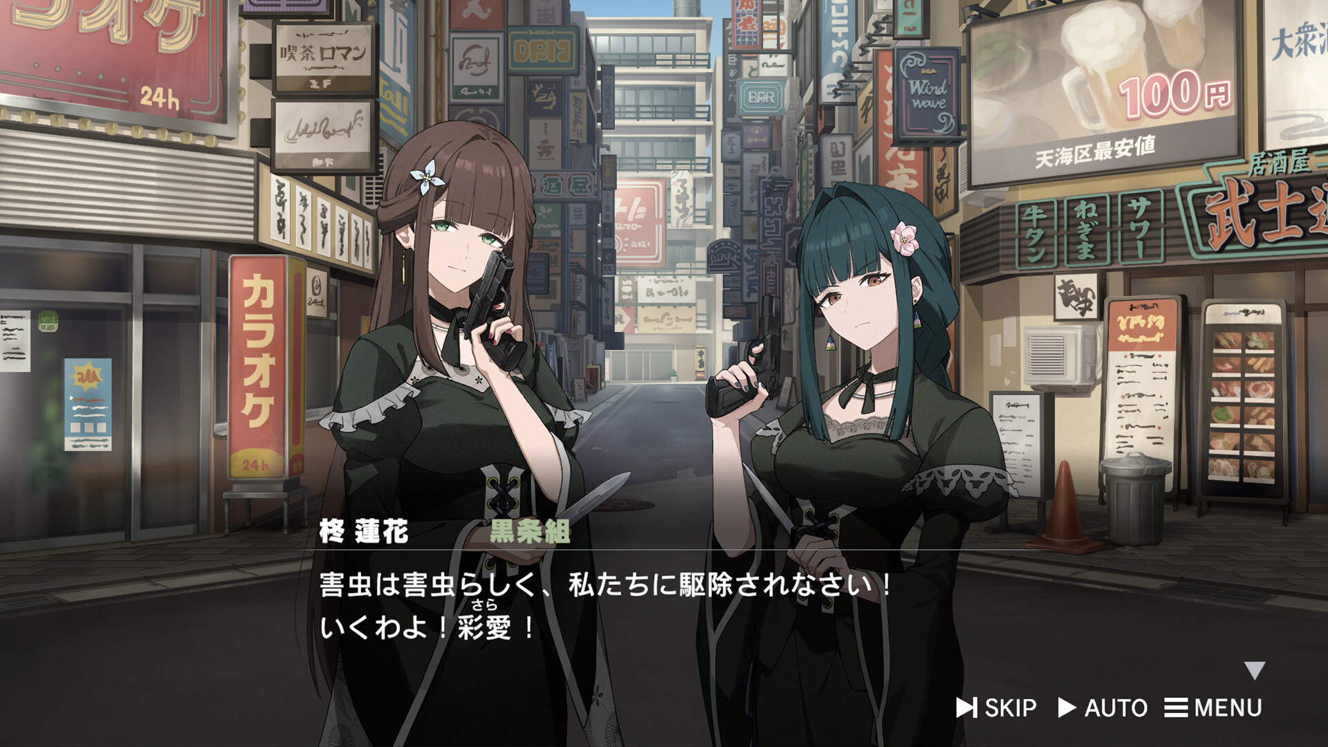 常に妹の彩愛と一緒で、先代の頃から黒条組に仕えており、戦闘時は高笑いと共に相手を物理的にも精神的にも容赦なくいたぶる。