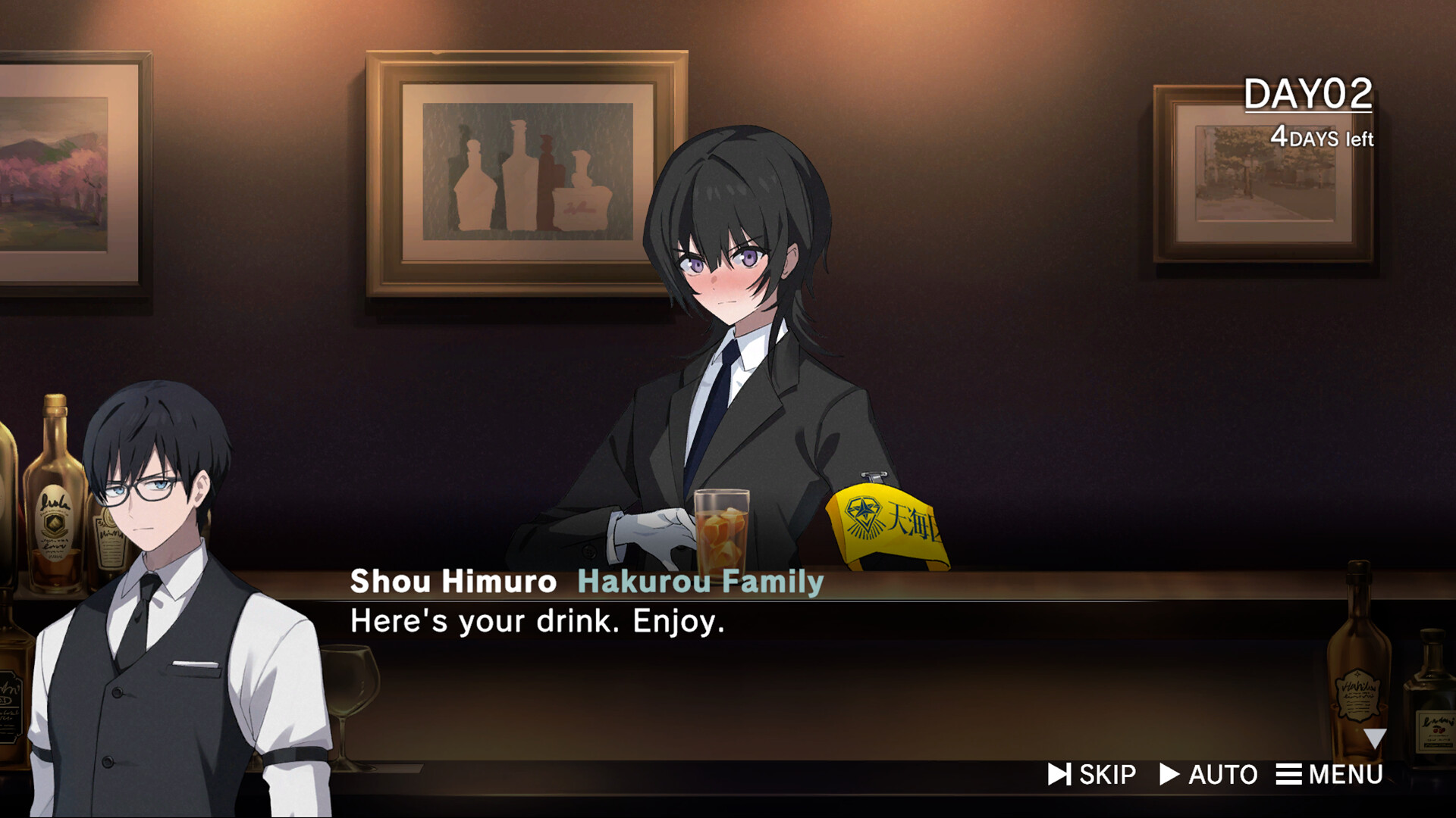 In the latter half of the story, the protagonist takes on the role of a bartender at ROAD59, working to save Hakurougumi while interacting with various characters and gathering intel.