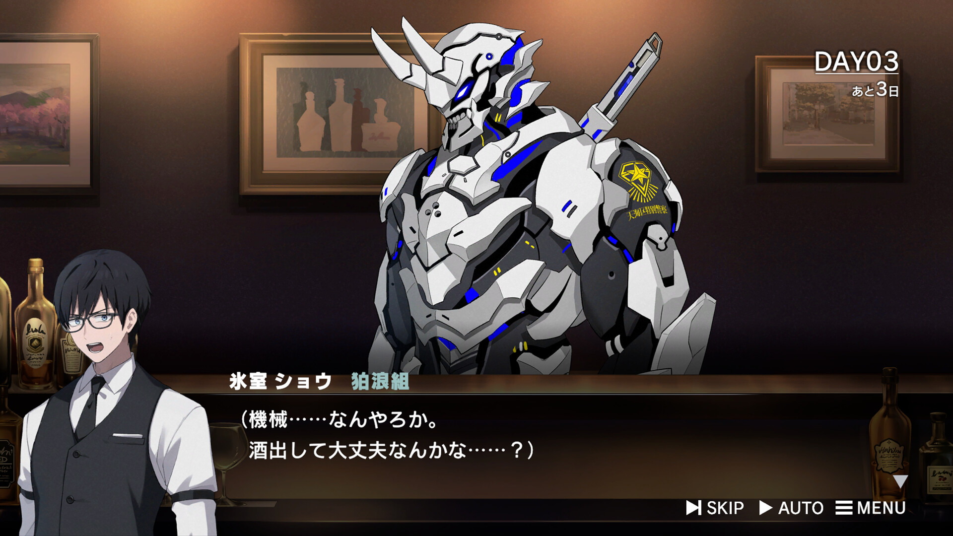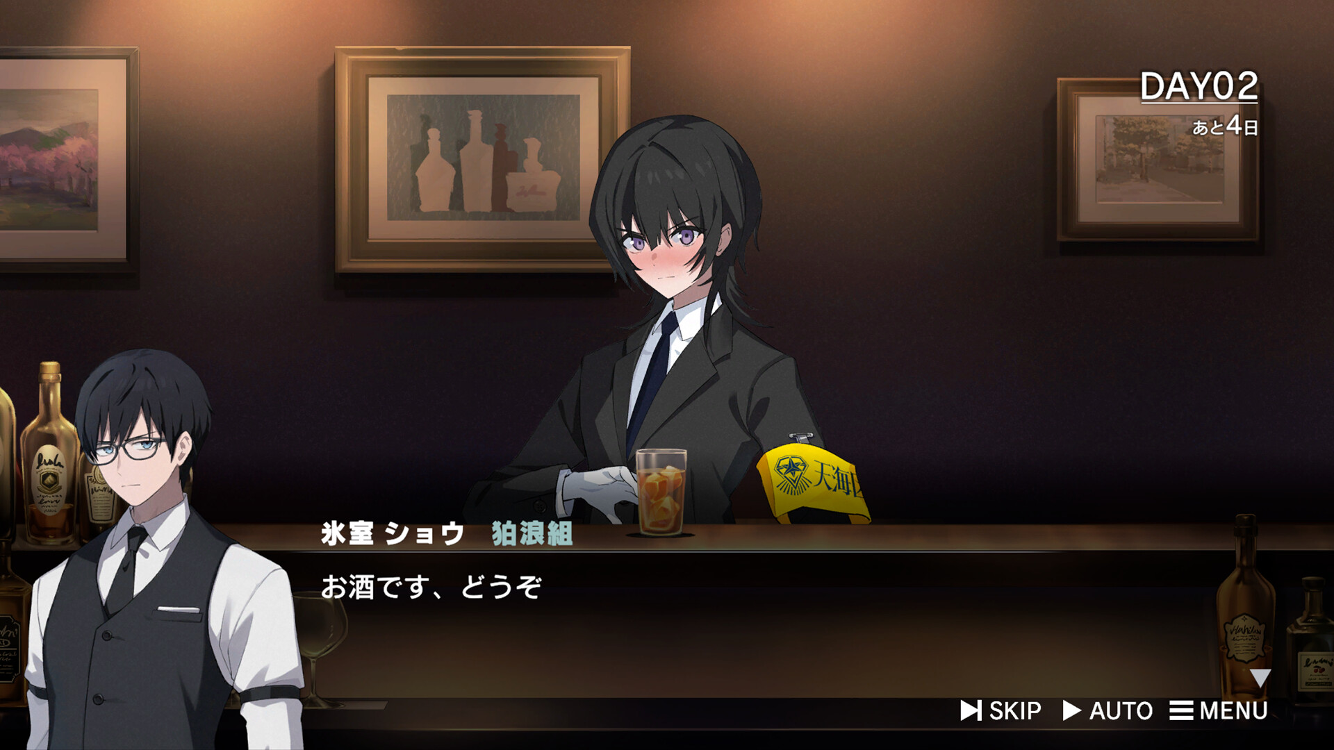 物語の後半では、狛浪組を救うためバーテンダーとして働きながら、キャラクター達と交流し情報を収集も行う。