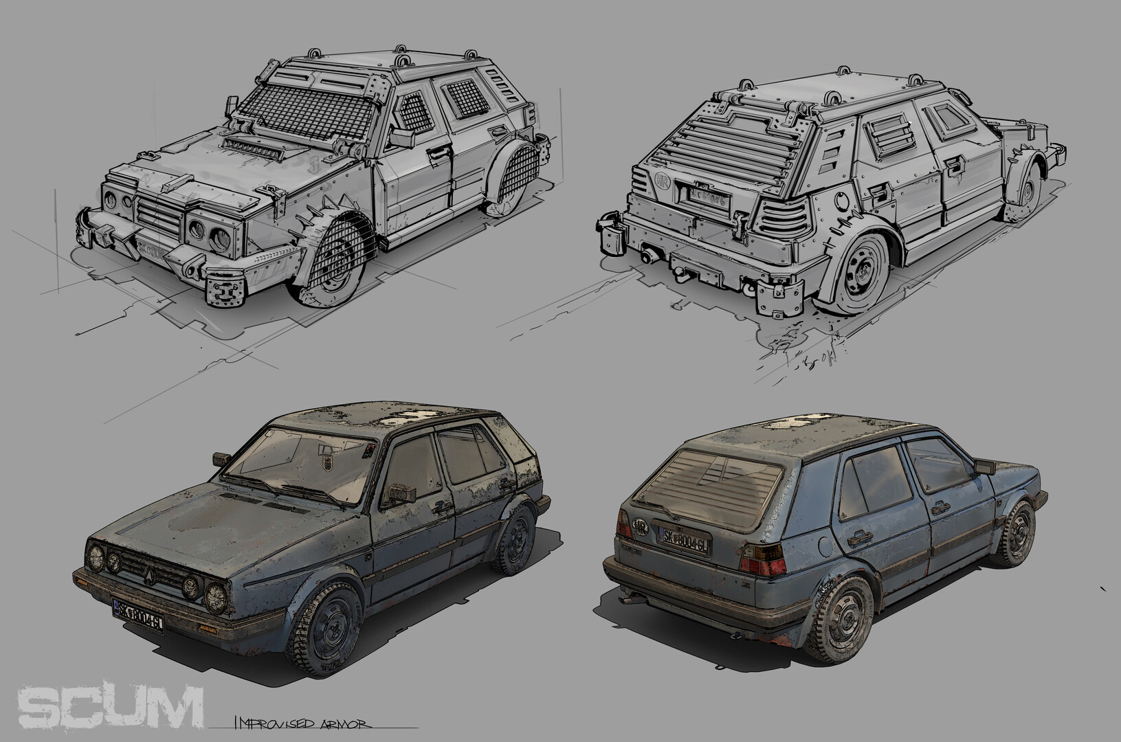 An assortment of various concept art from SCUM’s rich development history featuring different elements of the game.