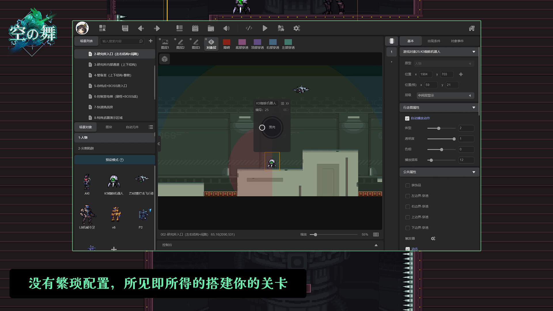 提示:该模板具备了空之猎的功能和素材,如果您未拥有空之猎,且有更多高级战斗相关功能的需求,也愿意接受更为复杂的编辑器功能和操作,或者想制作类银河战士恶魔城游戏,那么可以直接选择该模板。
