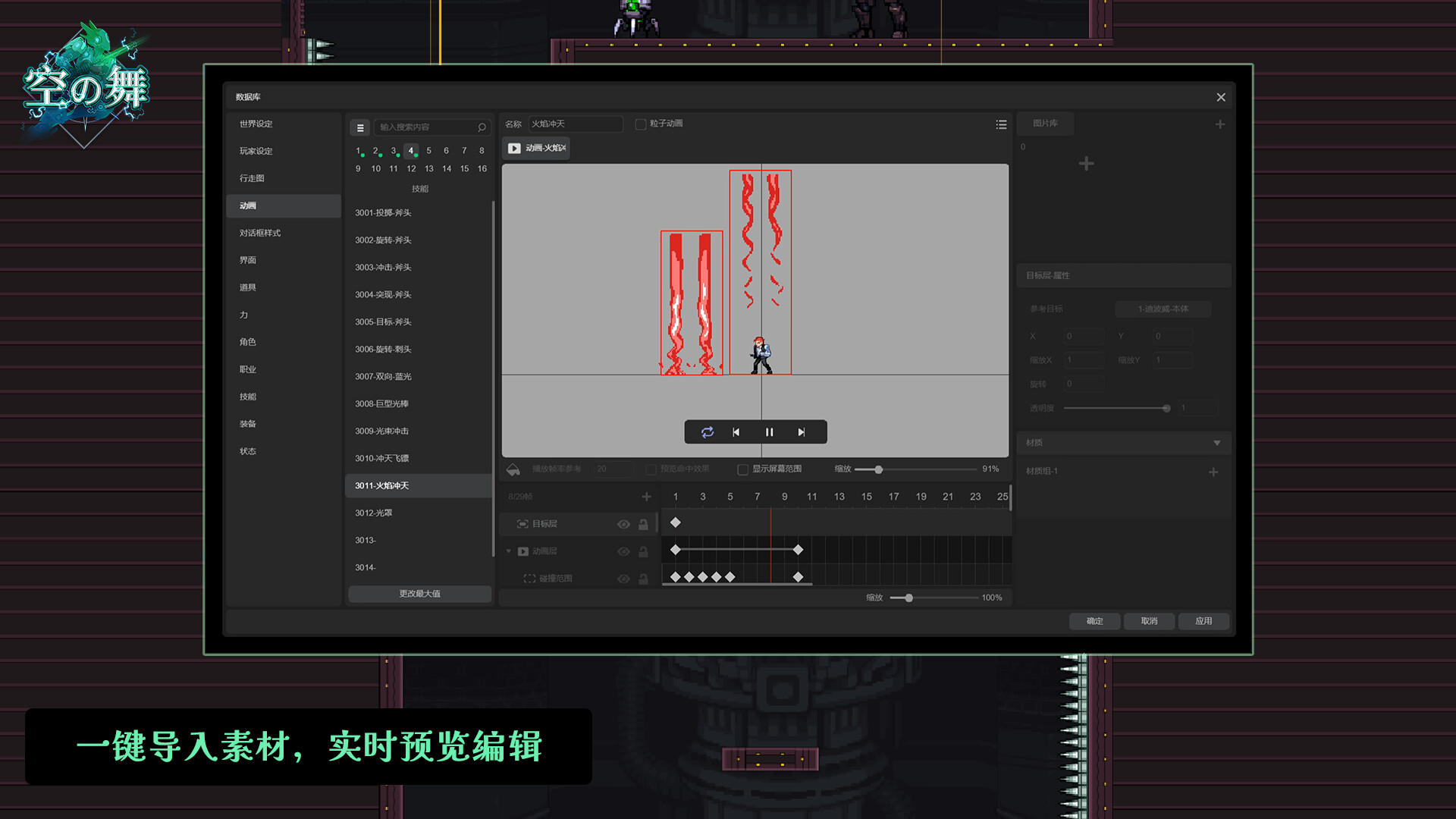 ● 自定义碰撞形状和时间帧,用于计算攻击和各种技能对目标的击中判定(碰撞检测)