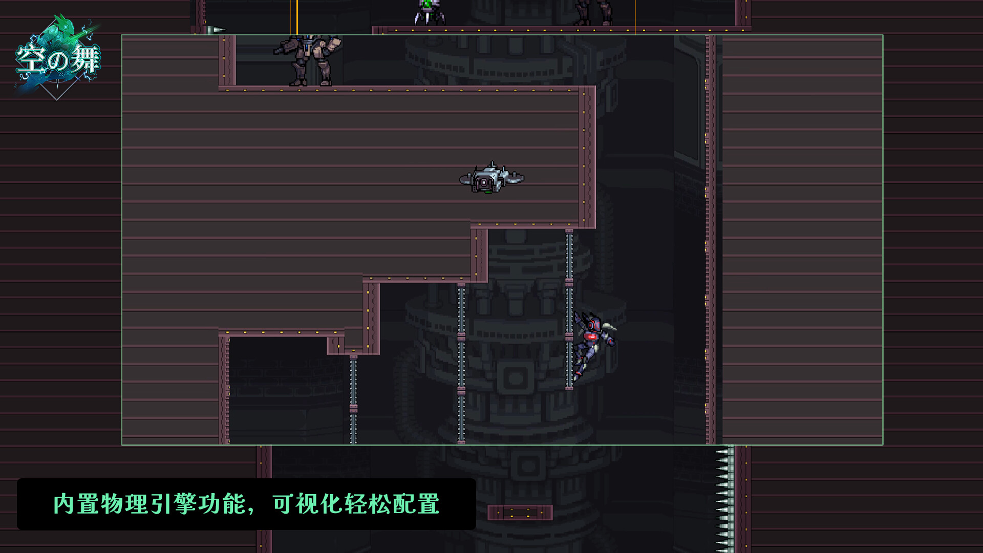 该模板是GameCreator官方出品的游戏模板-《空之舞》。 是一款类银河战士恶魔城的2D平台跳跃游戏模板。