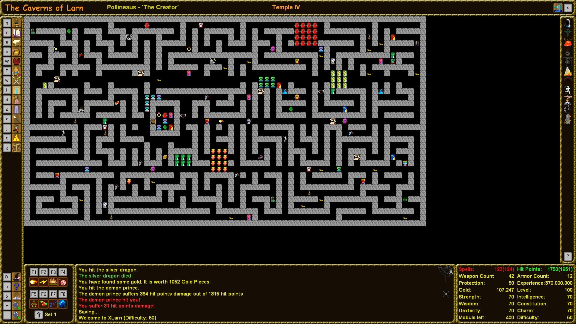 This is a heavily extended version of one of the most famous roguelike games of the 80’s named LARN. Your choice is to find a magic elixier for your daughters recovery. Therefore you have to explore a lot of unknown caves, filled with monsters, demons and traps. Good luck! You may need it!