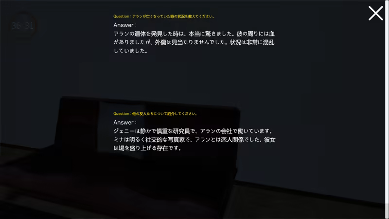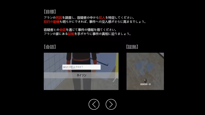 繰り返しプレイすることで新たな証拠を発見し、アランの死の真相にたどり着くことができます。