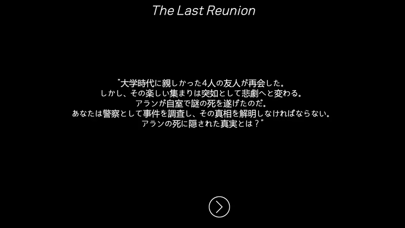 The Last Reunion(ザ・ラスト・リユニオン)は、AIによる推理ゲームであり、楽しい再会が悲劇に変わる物語です。