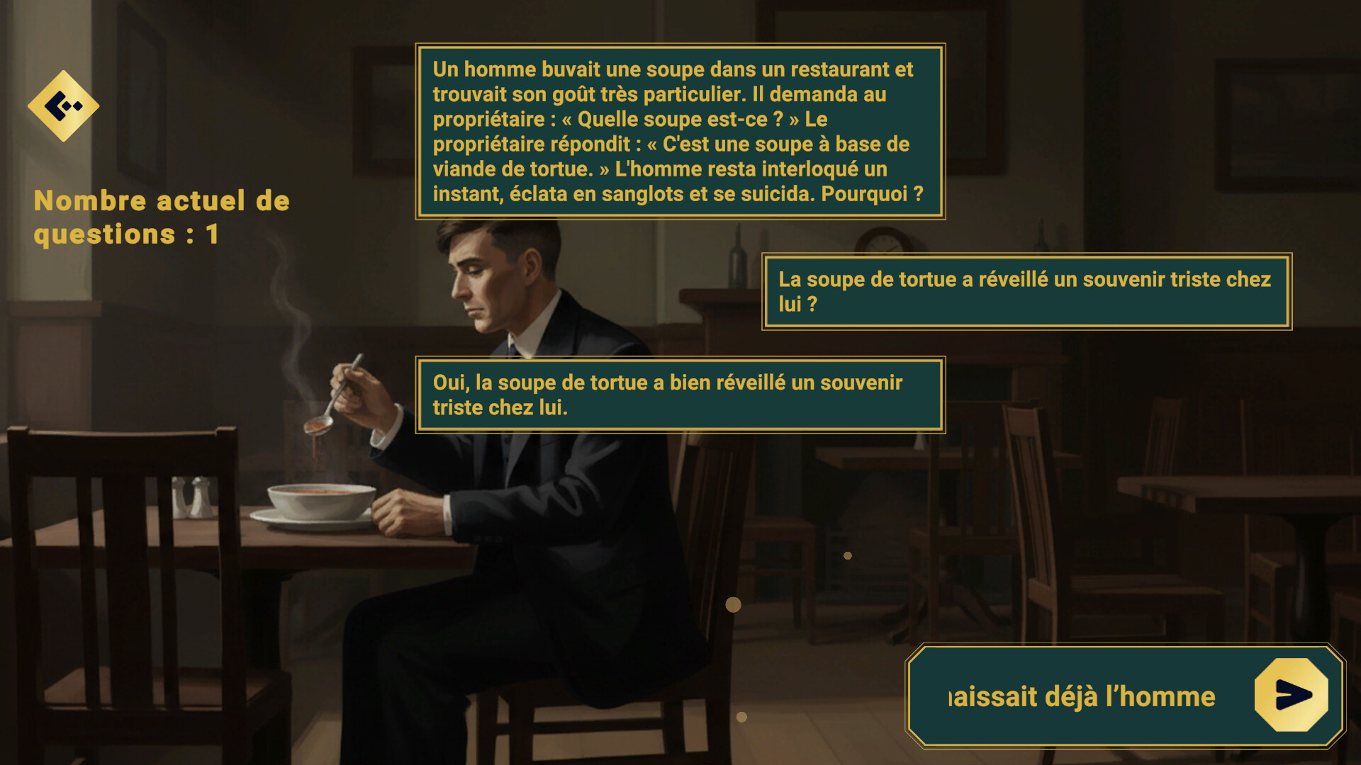 Posez des questions, déduisez, démêlez—la vérité n'est qu'à une question.