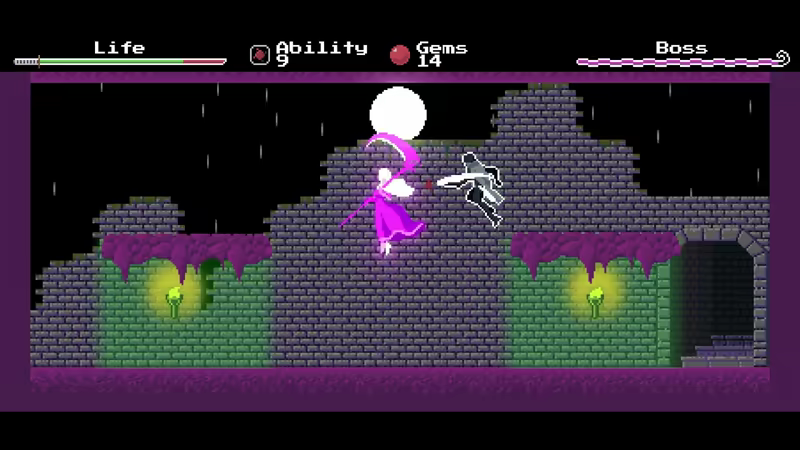 Ninja Ruins is a 2D pixel action-platformer with challenging gameplay. Face demons, defeat bosses, collect orbs, and buy skills to become stronger. Test your reflexes against traps and fight to stop hell from consuming Earth!