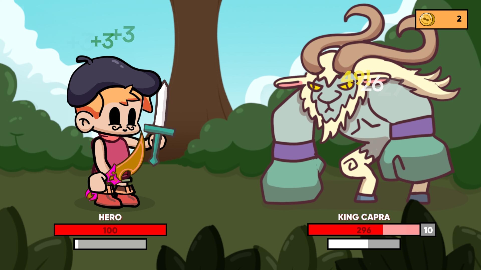Defeat goats one battle at a time and expand your build after every fight. Choose new gear, experiment with its attributes, and uncover powerful combinations and synergies.