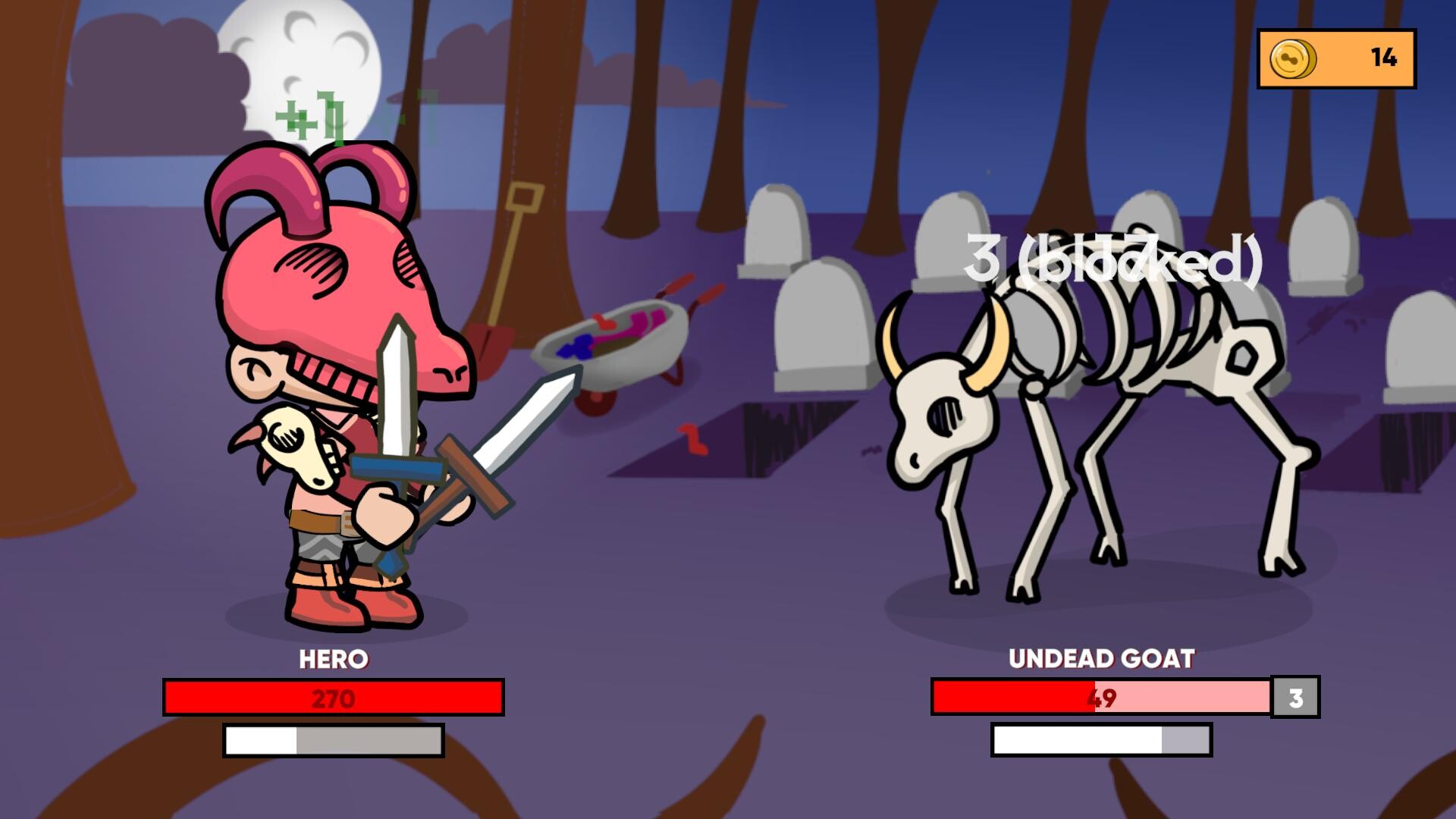 Defeat goats one battle at a time and expand your build after every fight. Choose new gear, experiment with its attributes, and uncover powerful combinations and synergies.