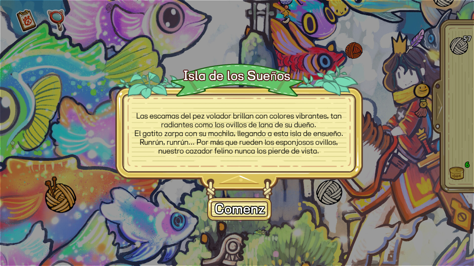 1. tarea principal: avanzar en la trama principal y obtener el final final final del juego recogiendo bolas de lana en el mapa de escena