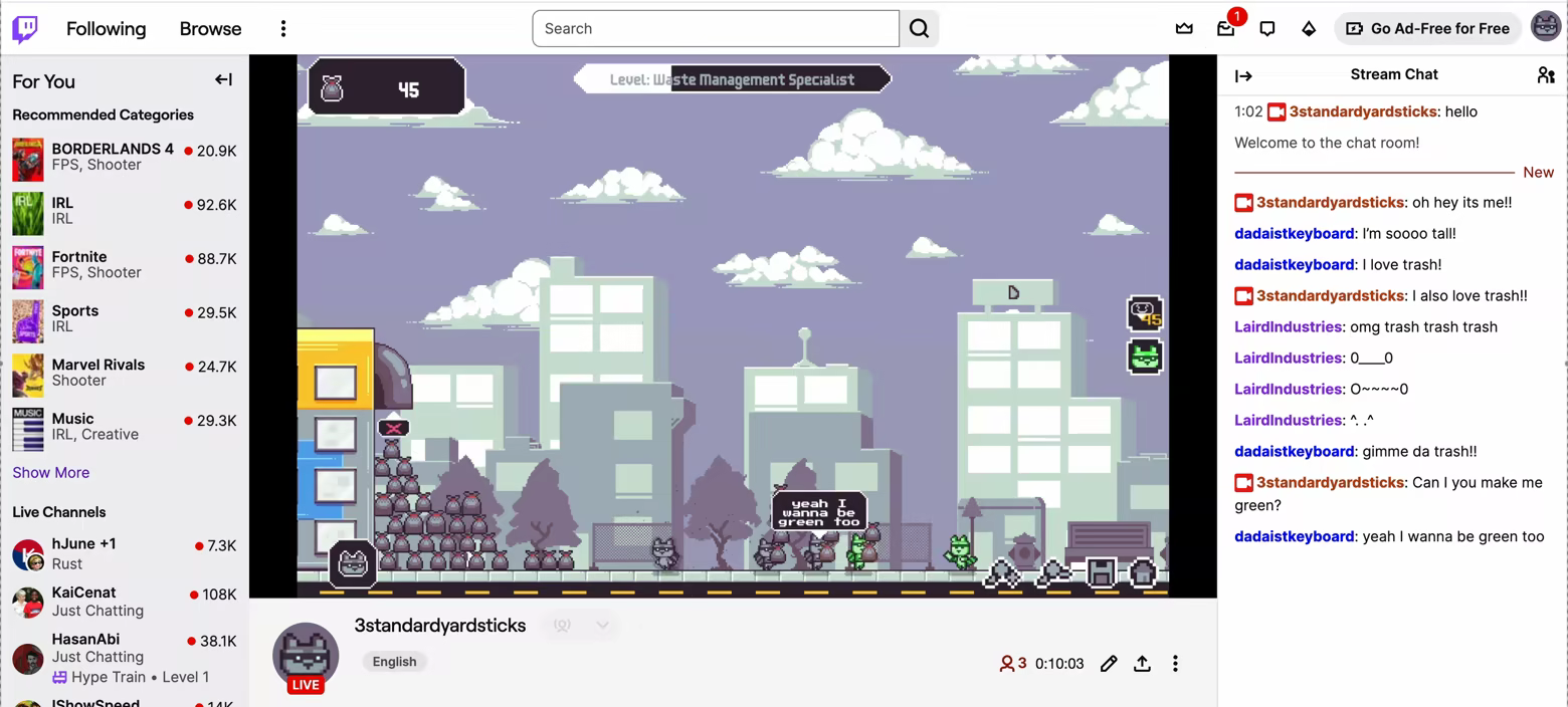 Integrate with Twitch to let your chat control your raccoons