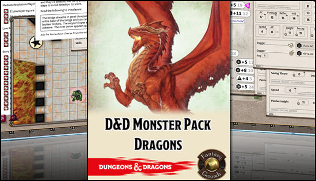 • Full stats for all dragons in the D&D Monster Manual, created as NPC records within Fantasy Grounds for use in building encounters and to help automate attacks and abilities in combat