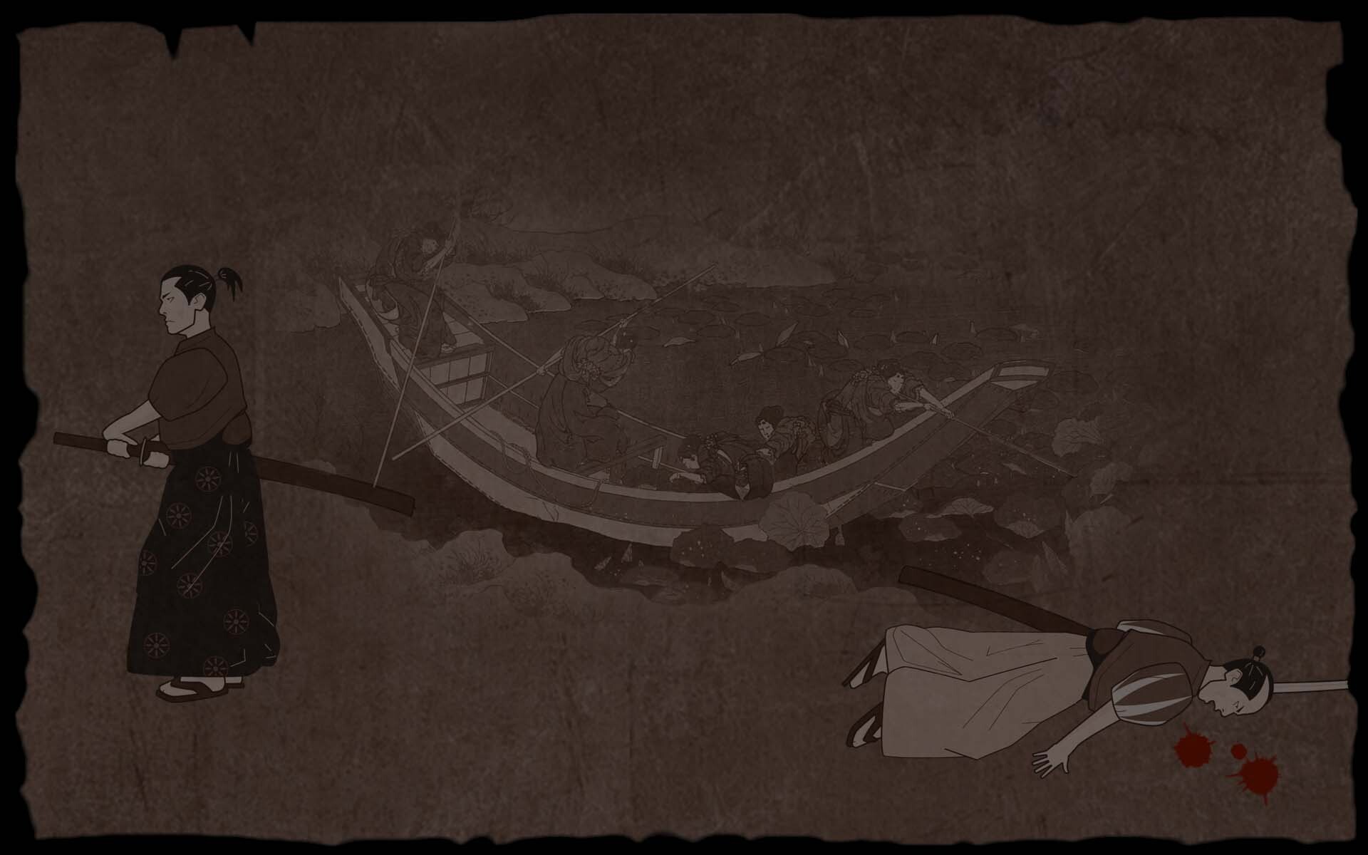 The graphics are attempting to restore the simple aesthetics of traditional Japanese prints by taking some pictorial elements of its great masters, while imbuing it with violence that characterized the confrontations.