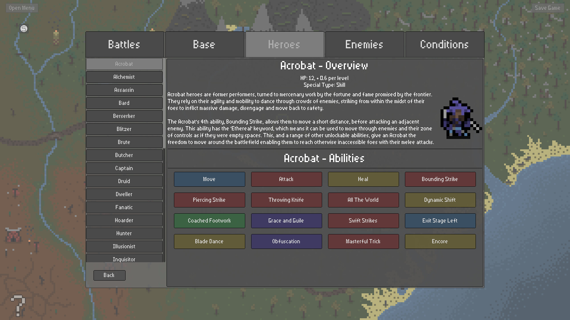 Recruit Heroes, gear up and face the threats of the Pixel Frontier! This engine-building, dice-rolling, turn-based strategy game has 36 Hero classes to choose from – each with their own sets of abilities, upgrades, synergies and strategies for near endless possibilities.