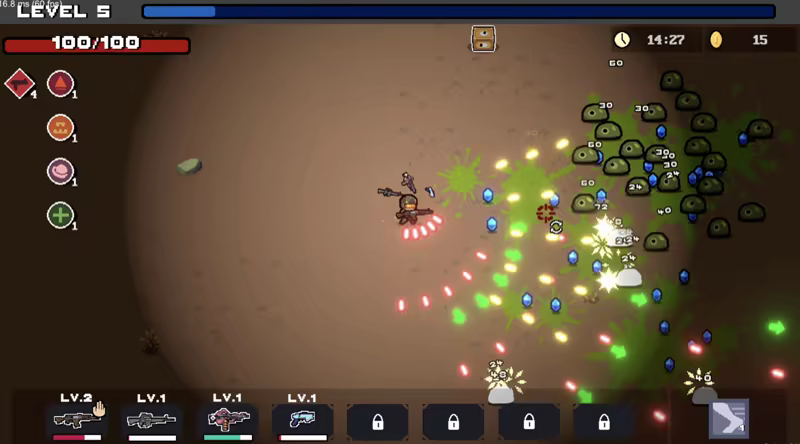 Bound Survivor is a fast-paced, satisfying 2D pixel-art top-down roguelike action game.