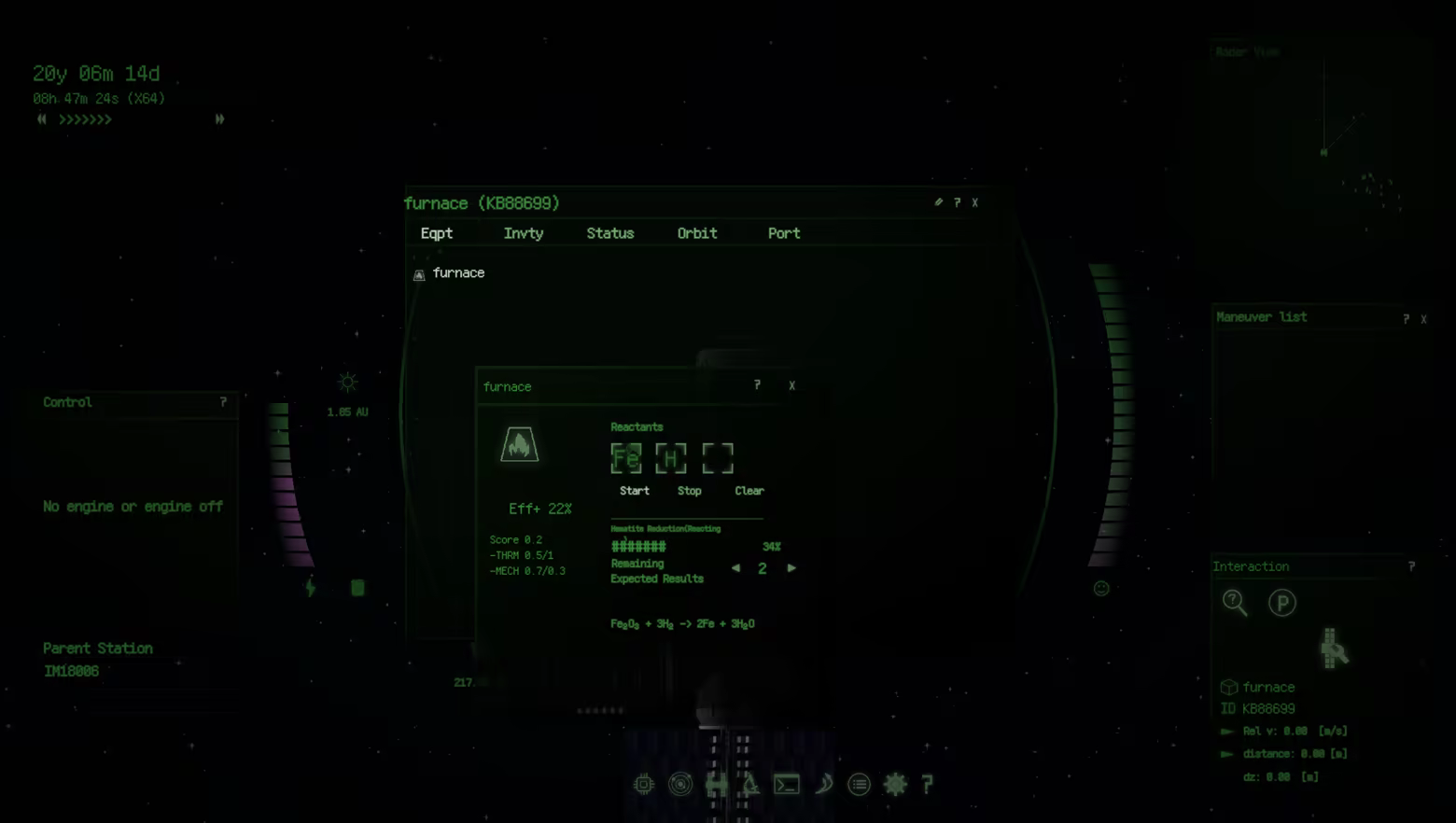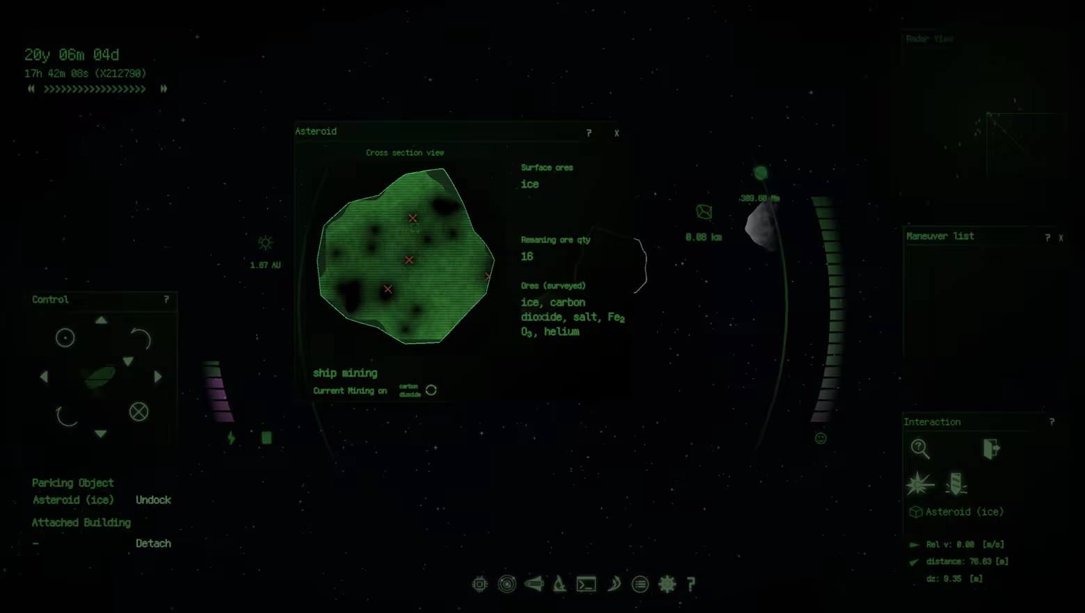 “Currently, we have implemented all the basic mechanics, including orbital mechanics, asteroid scanning/drilling/mining, ore chemical reactions, research, and space station/spacecraft building, which together enable the space simulation experience.”