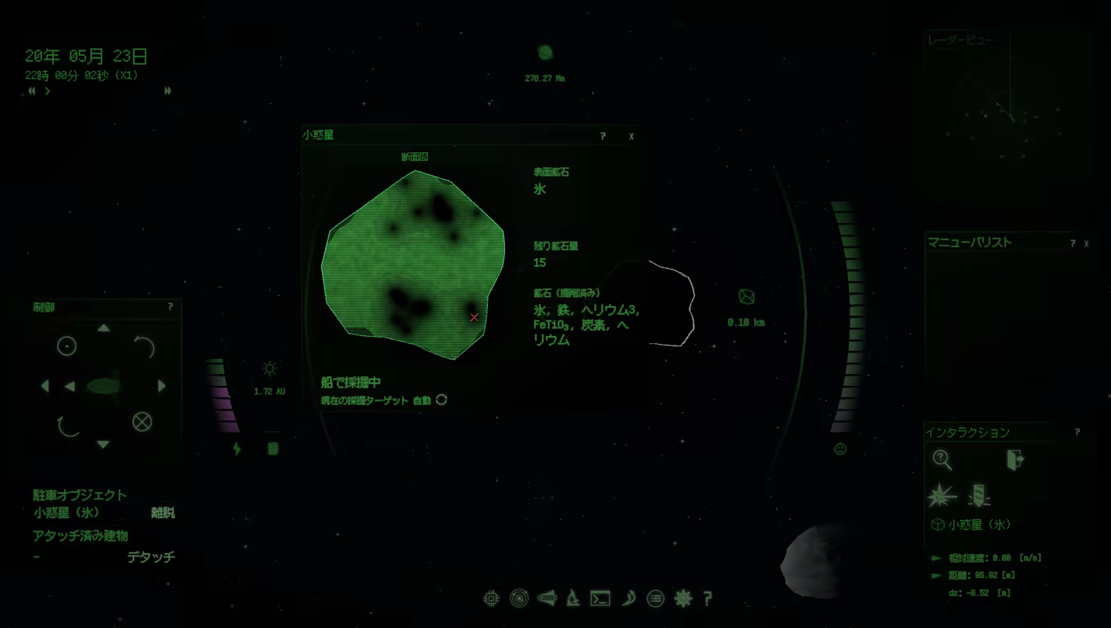 軌道力学を取り入れたSFコロニー建設シミュレーション。一機の宇宙船でスタートし、燃料・鉱石・電力・時間・正気度を管理しながら小惑星をスキャンしよう。基地を拡張し、未知の恒星系を探索。コロニー発展のため、ステーションや宇宙船を建造せよ。