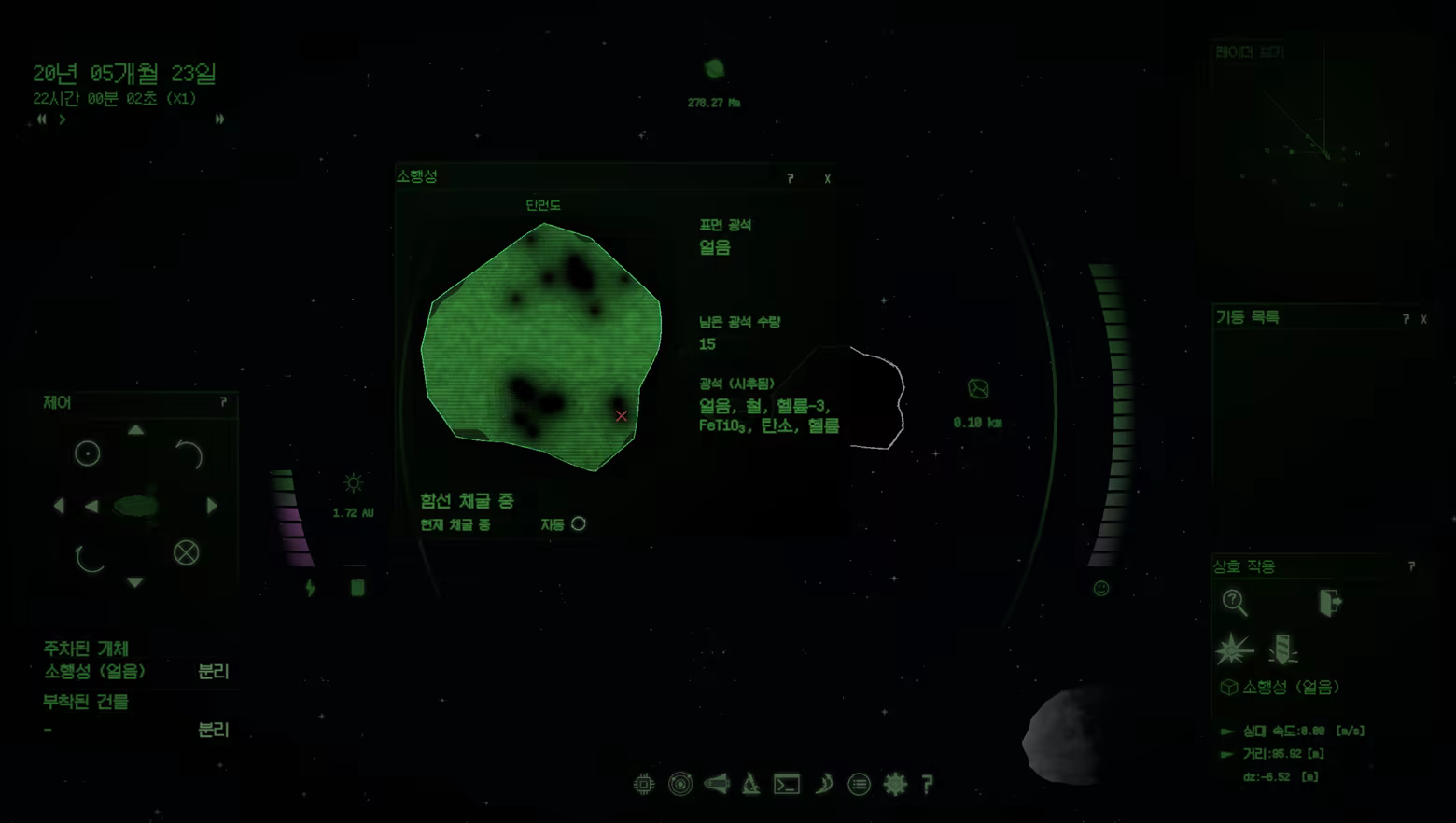 궤도 역학이 포함된 SF 정착 건설 게임. 우주선에서 시작해 소행성을 스캔하고 연료, 광석, 전력, 시간, 정신력을 관리하며 정착지를 확장하고 외계 항성계를 탐사하며 기지와 우주선을 건설하세요.