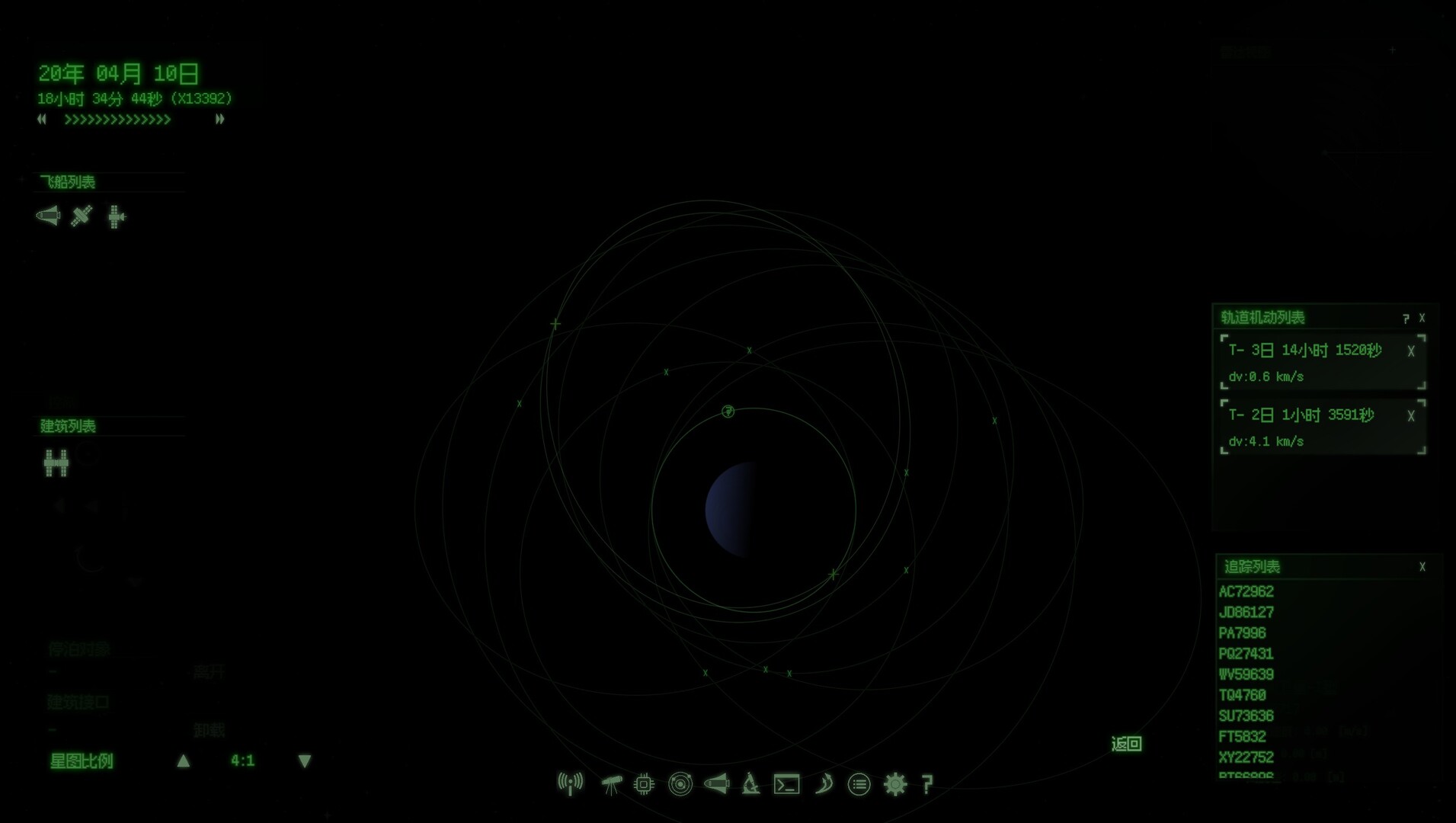 游戏目前已具备一个初步的轨道侦测与拦截原型。未来战斗系统仍在探索中,方向将聚焦于基于轨道规划与Δv管理的超视距策略战斗,而非近距离动作或操作反应类战斗。