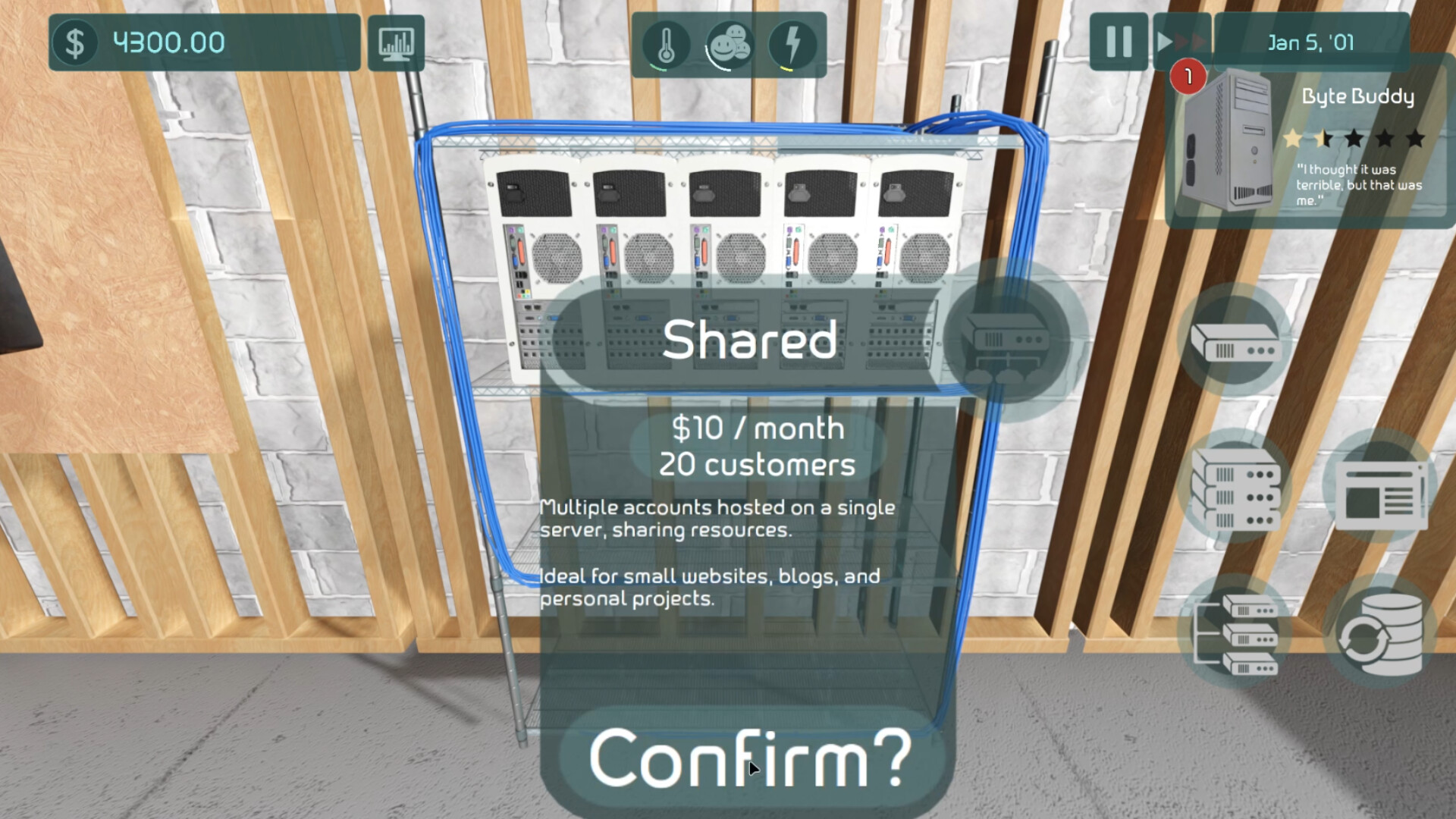 But this is just the beginning. The full game will take you beyond the basement, allowing you to expand into warehouses and high-tech data centers. Your dream of dominating the hosting industry starts here.
