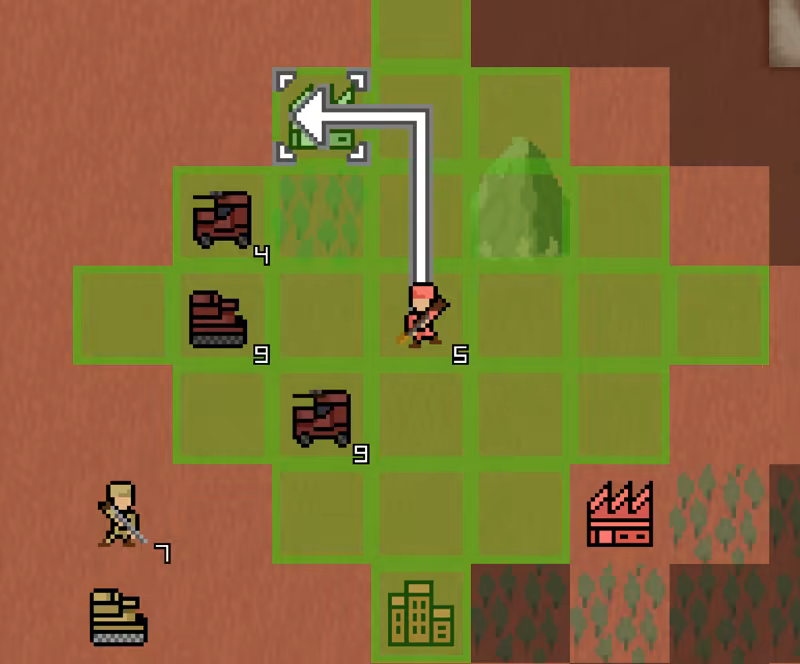 Each turn, you can command your forces to move on a grid-patterned battlefield and attack an enemy unit that is in range.
