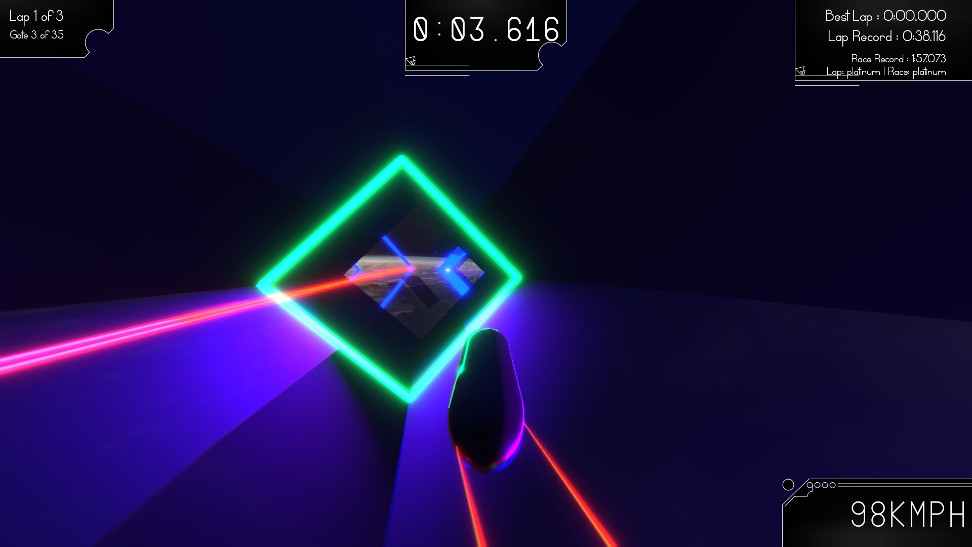 Demo now available!  The first six tracks are yours to play for free, divided into two types of track.  Fluid circuits are fast and flowing, whereas Formula circuits are much tighter and more challenging to complete.  The full-game will also include Puzzle circuits, which will be require extreme levels of accuracy and control and where completion is the first priority of speed.