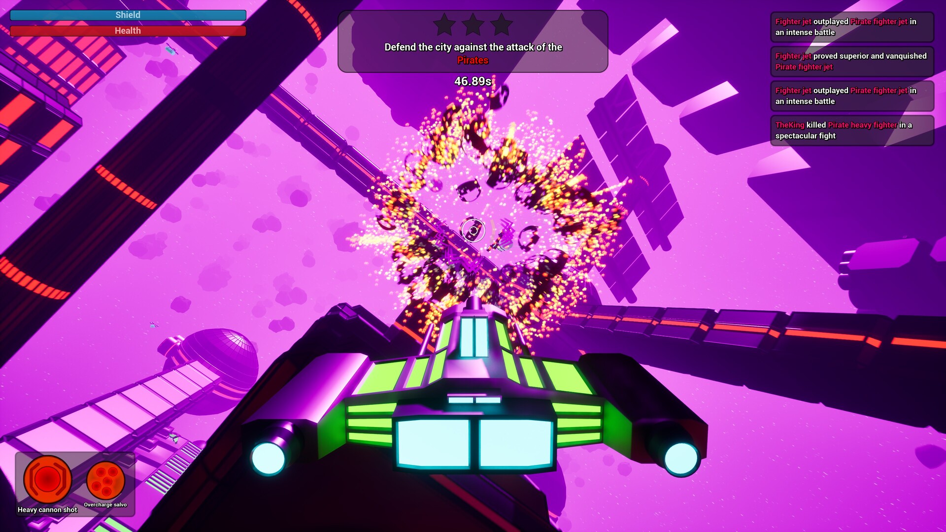 Виконайте безліч різних місій у режимі кампанії та врятуйте космічне місто від піратів!